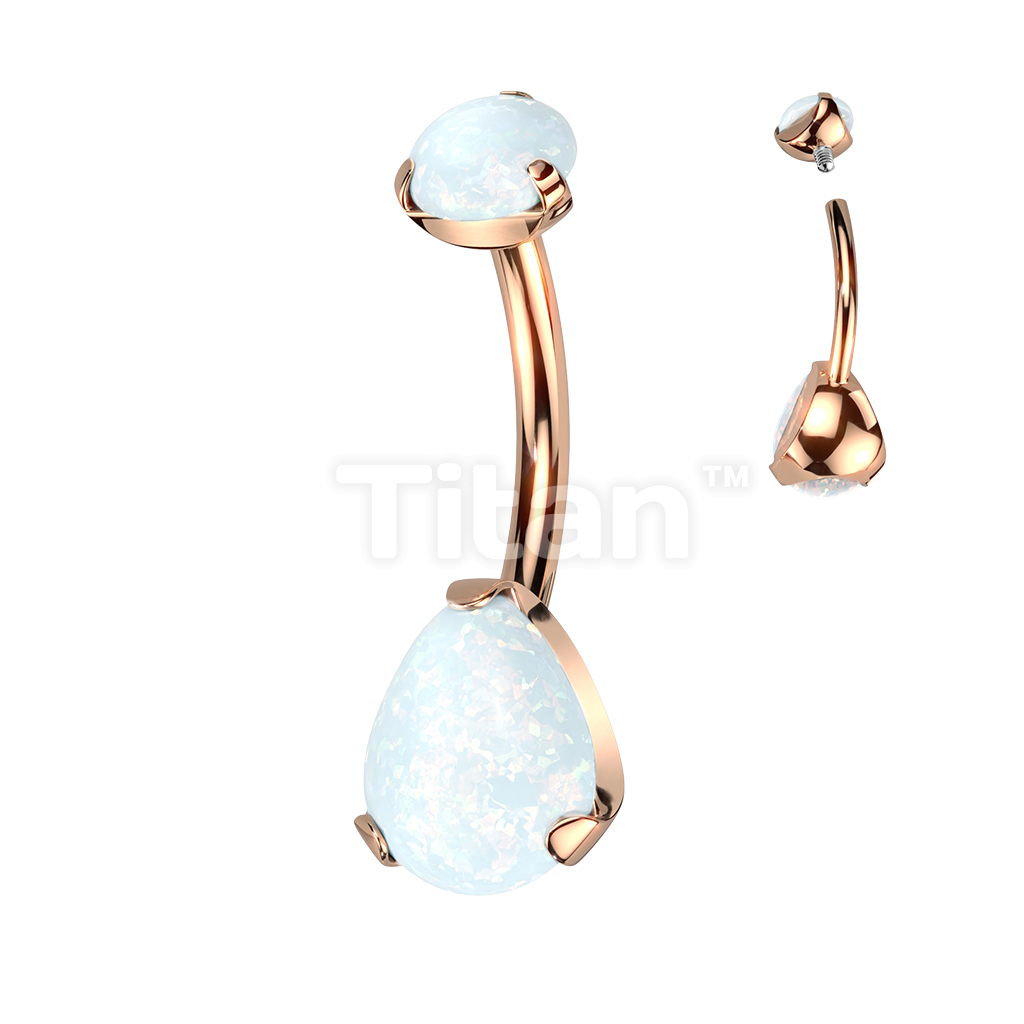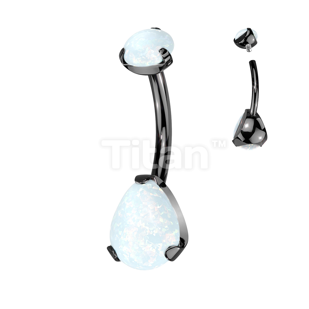 Implant Grade Titanium Internally Threaded Round Opal Top With Bottom Prong Set Pear Shape Opal Belly Button Ring
