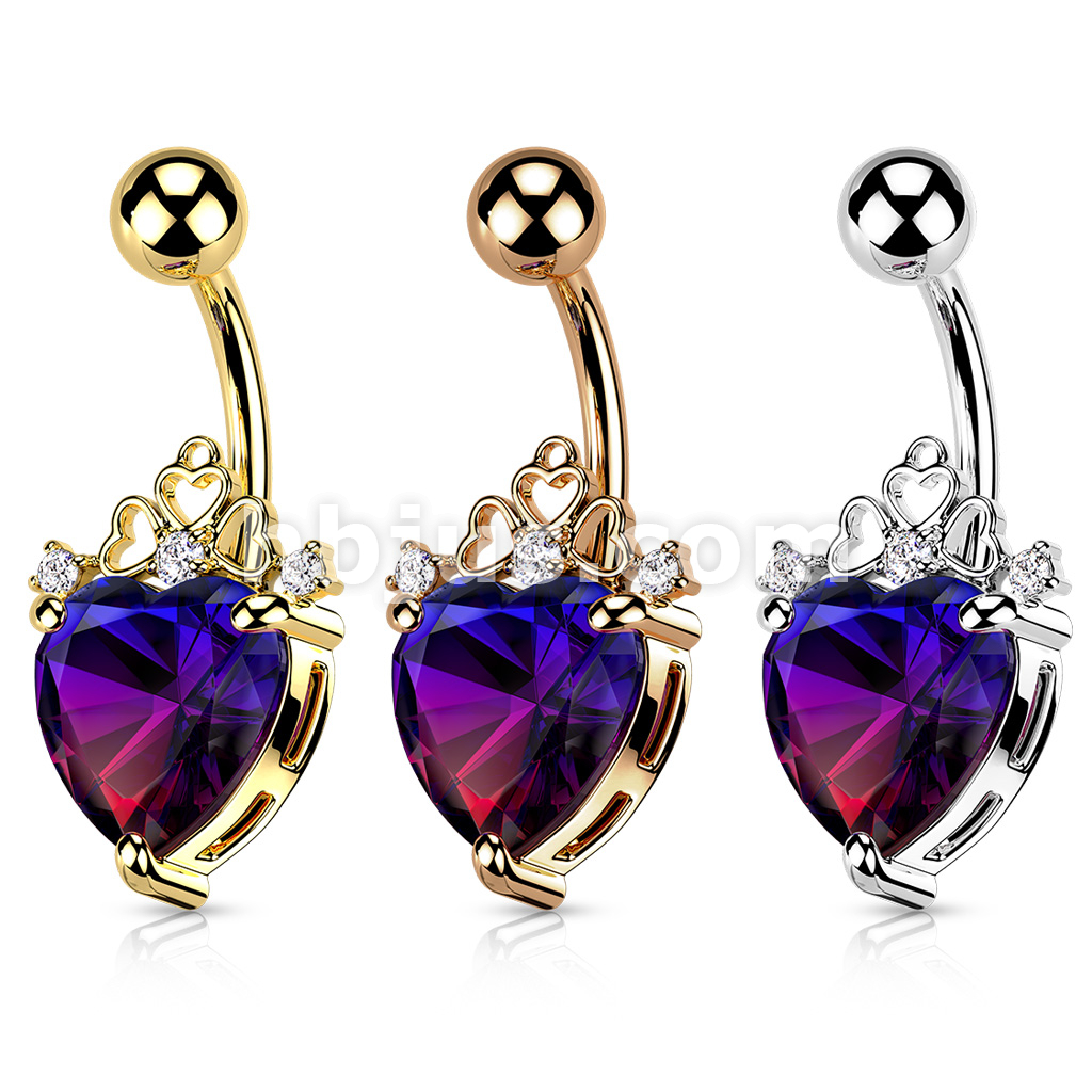 316L Surgical Steel Heart Filigree With Heart Crystal Belly Button Ring