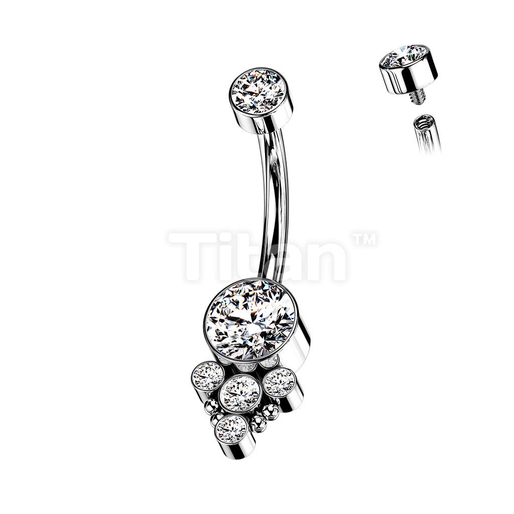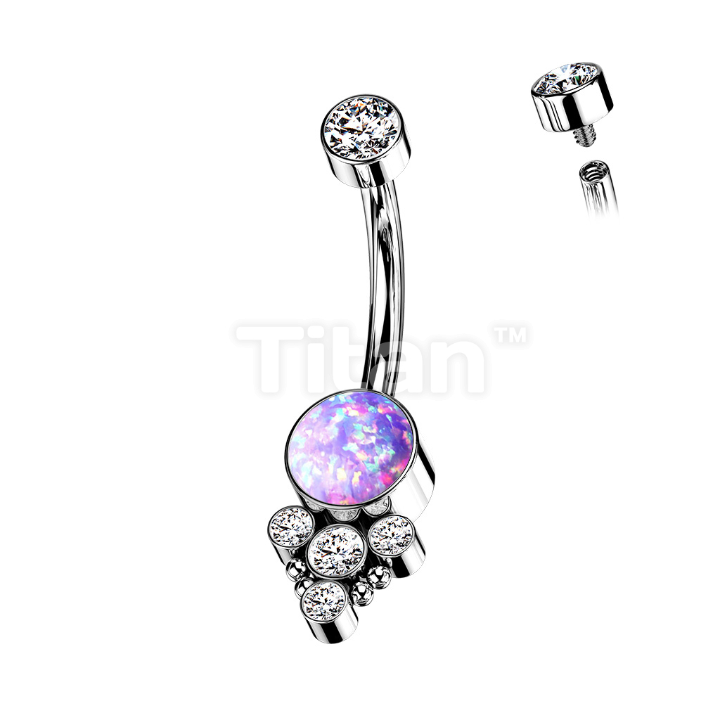 Implant Grade Titanium Internally Threaded Opal Or CZ Center With 4 CZ and Ball Cluster Belly Button Ring