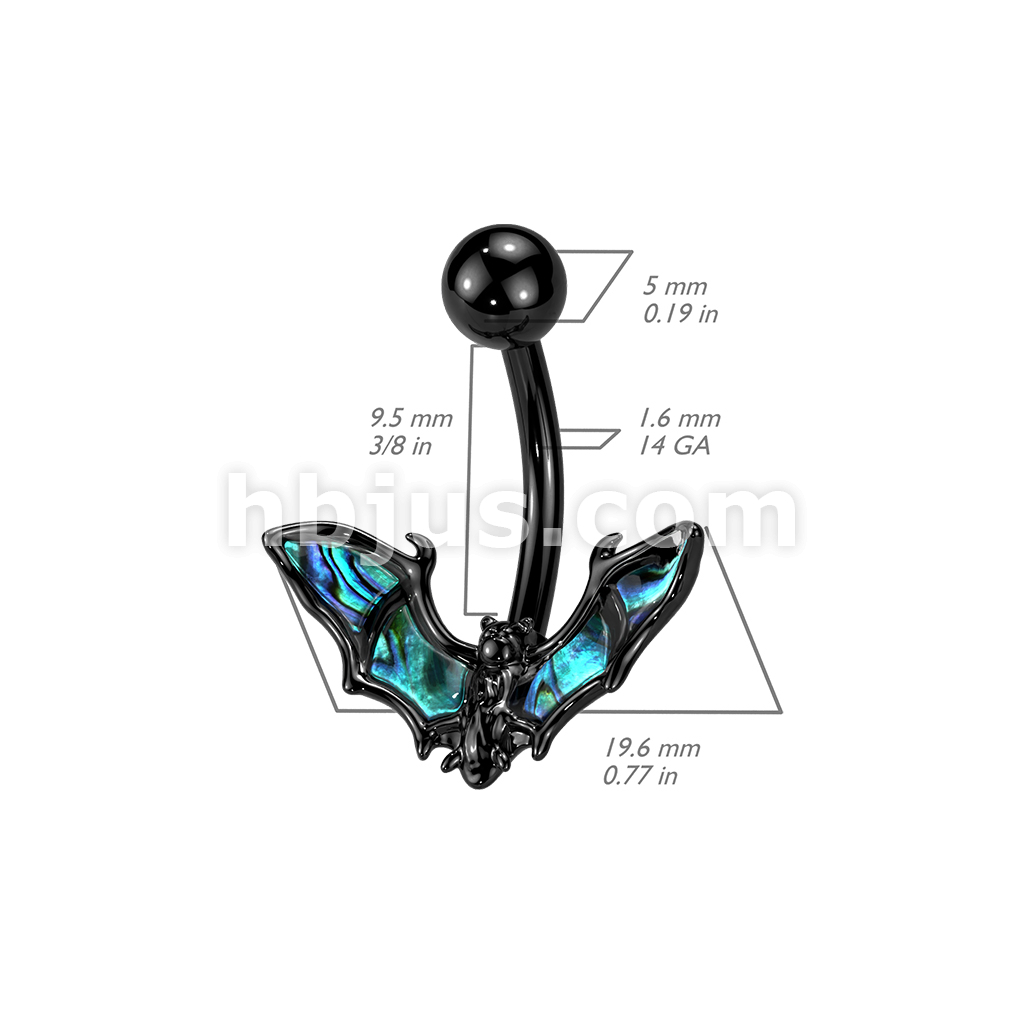 316L Surgical Steel Bat With Abalone Shell Wings Belly Button Ring