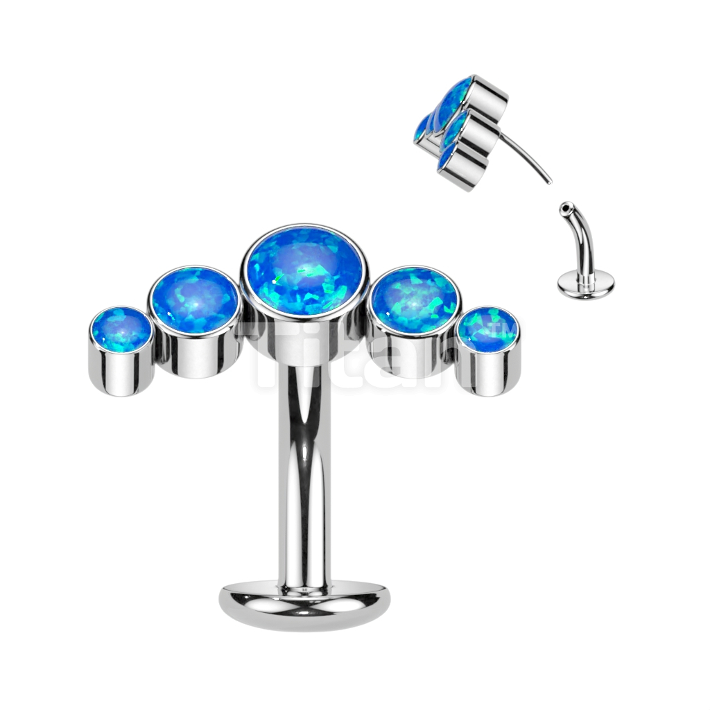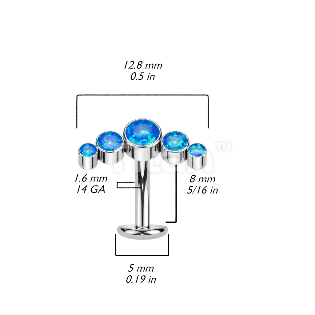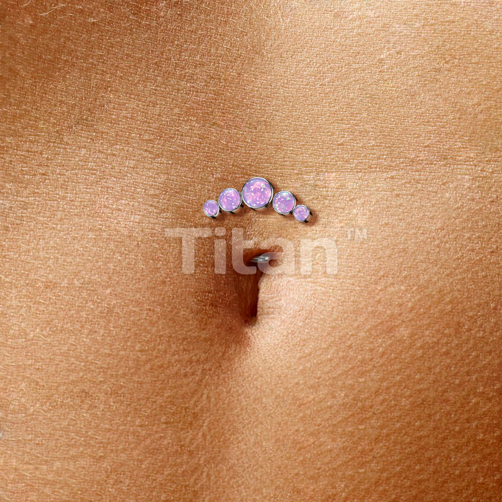 Implant Grade Titanium Threadless Floating Convex Base Belly Button Ring With 5 Round Bezel Set Opal Curve Top