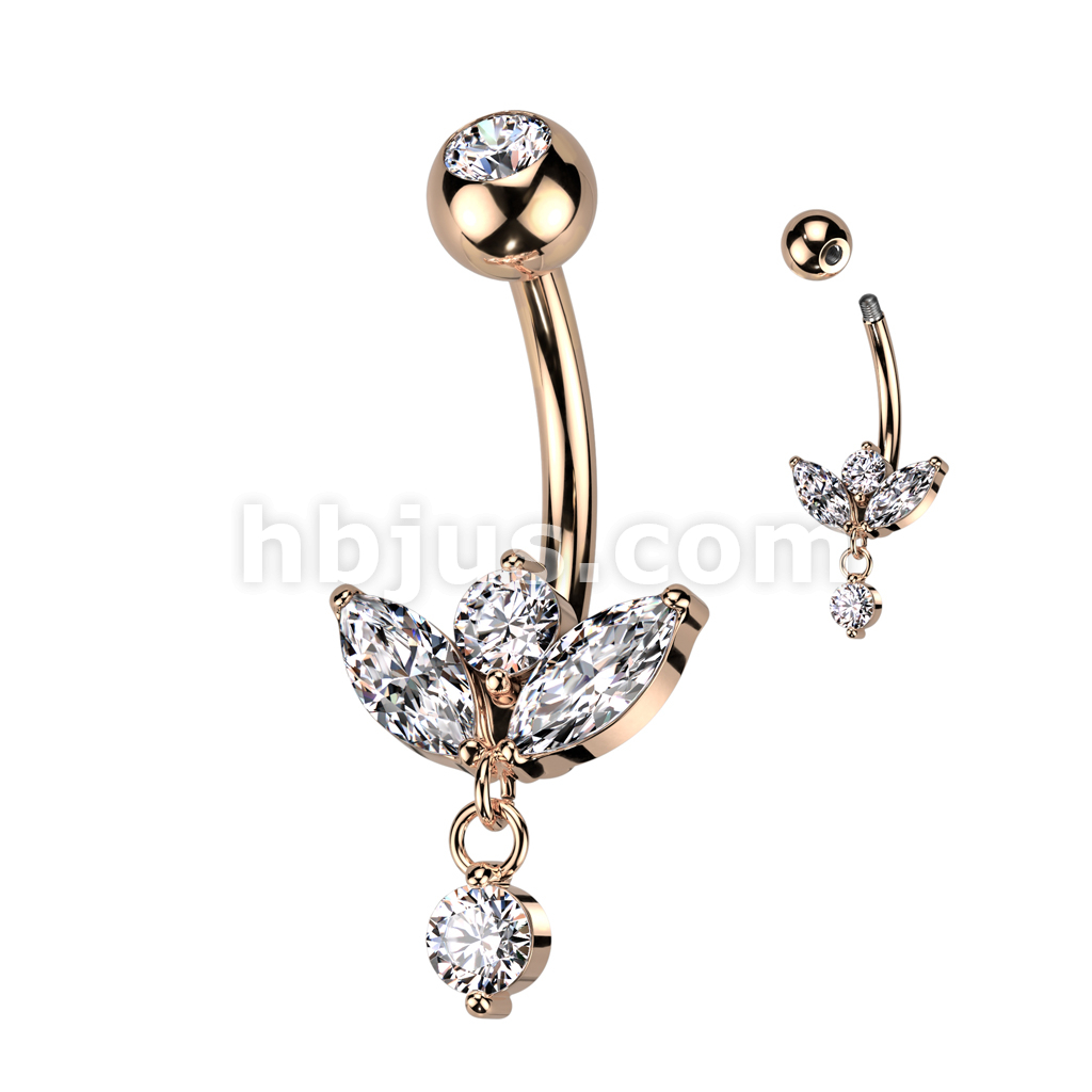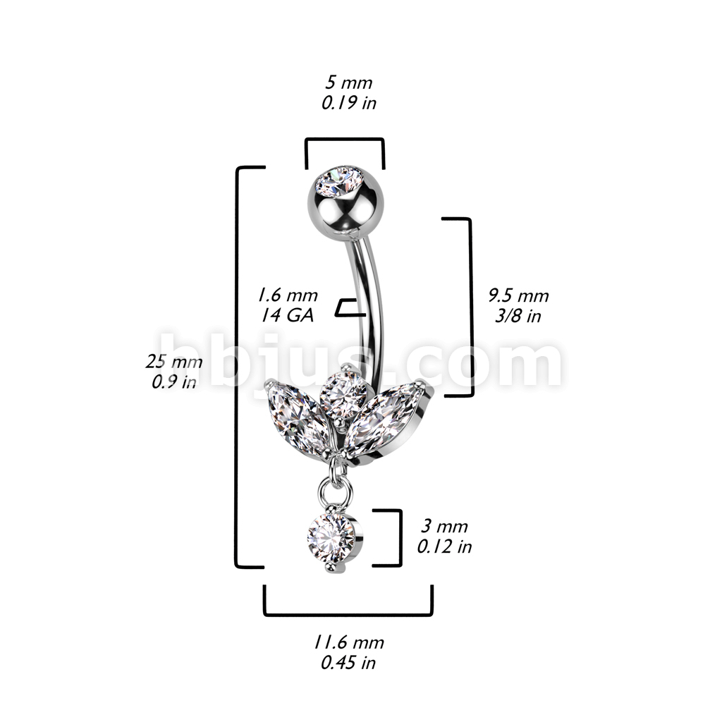 316L Surgical Steel Belly Ring With Marquise CZ Sprout and Small CZ Dangle