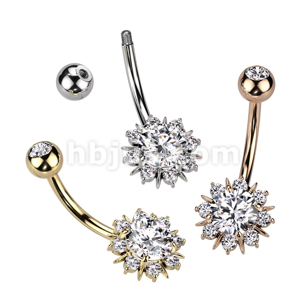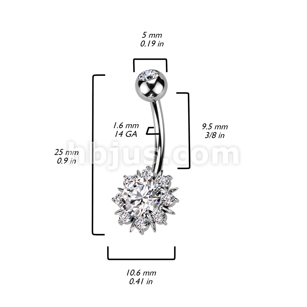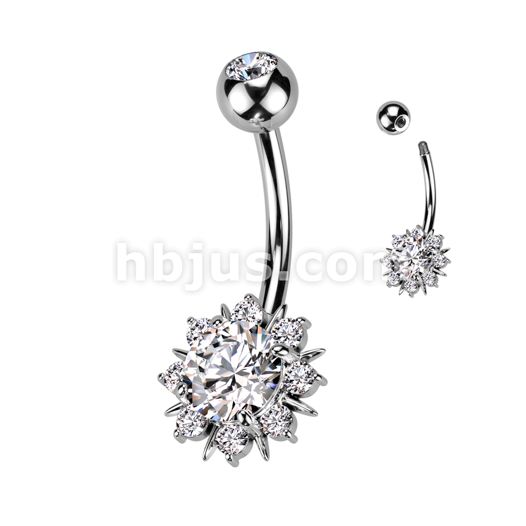 316L Surgical Steel Belly Ring With Round CZ Center Sunburst