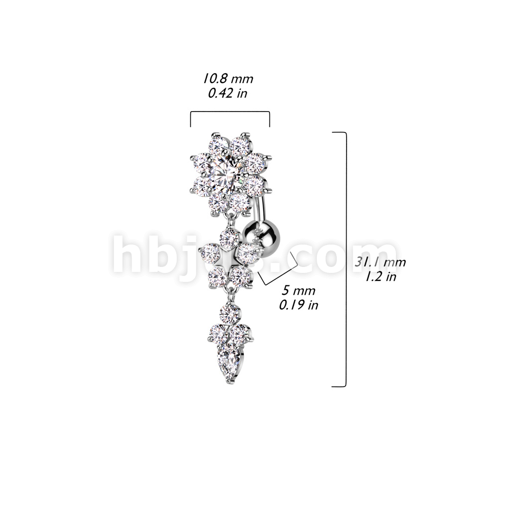 316L Surgical Steel Double Flower Top Drop Dangle Belly Button Ring