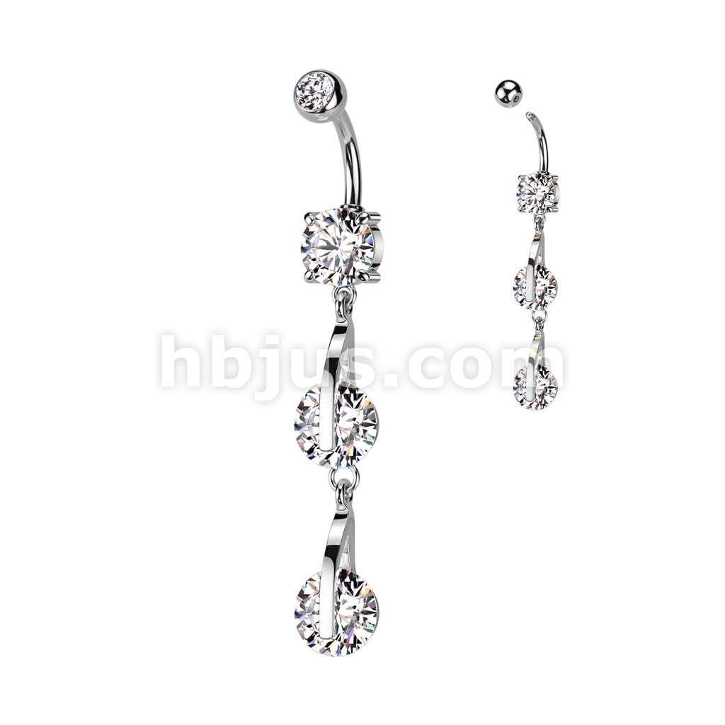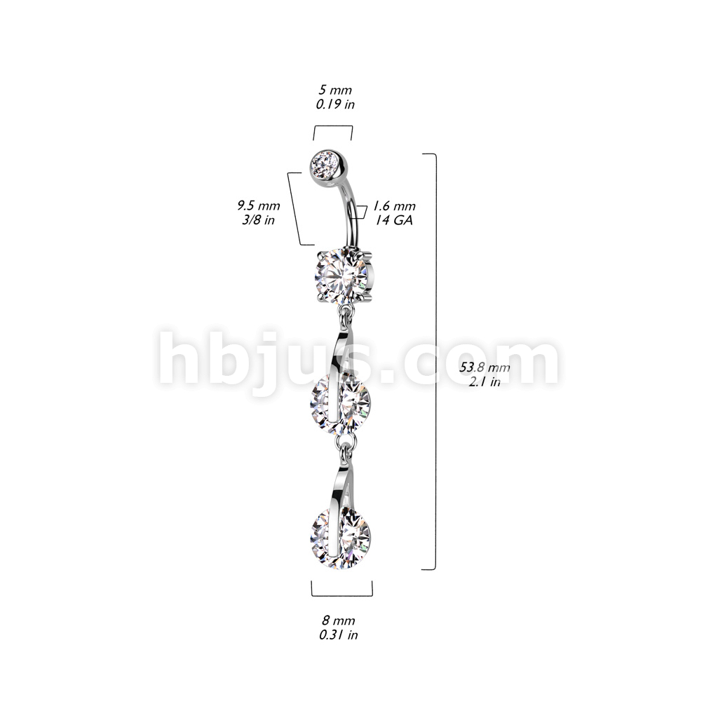 316L Surgical Steel Double CZ Dangle Belly Button Ring