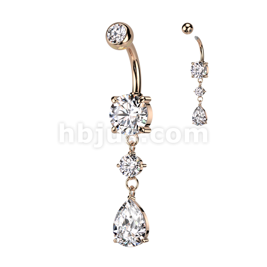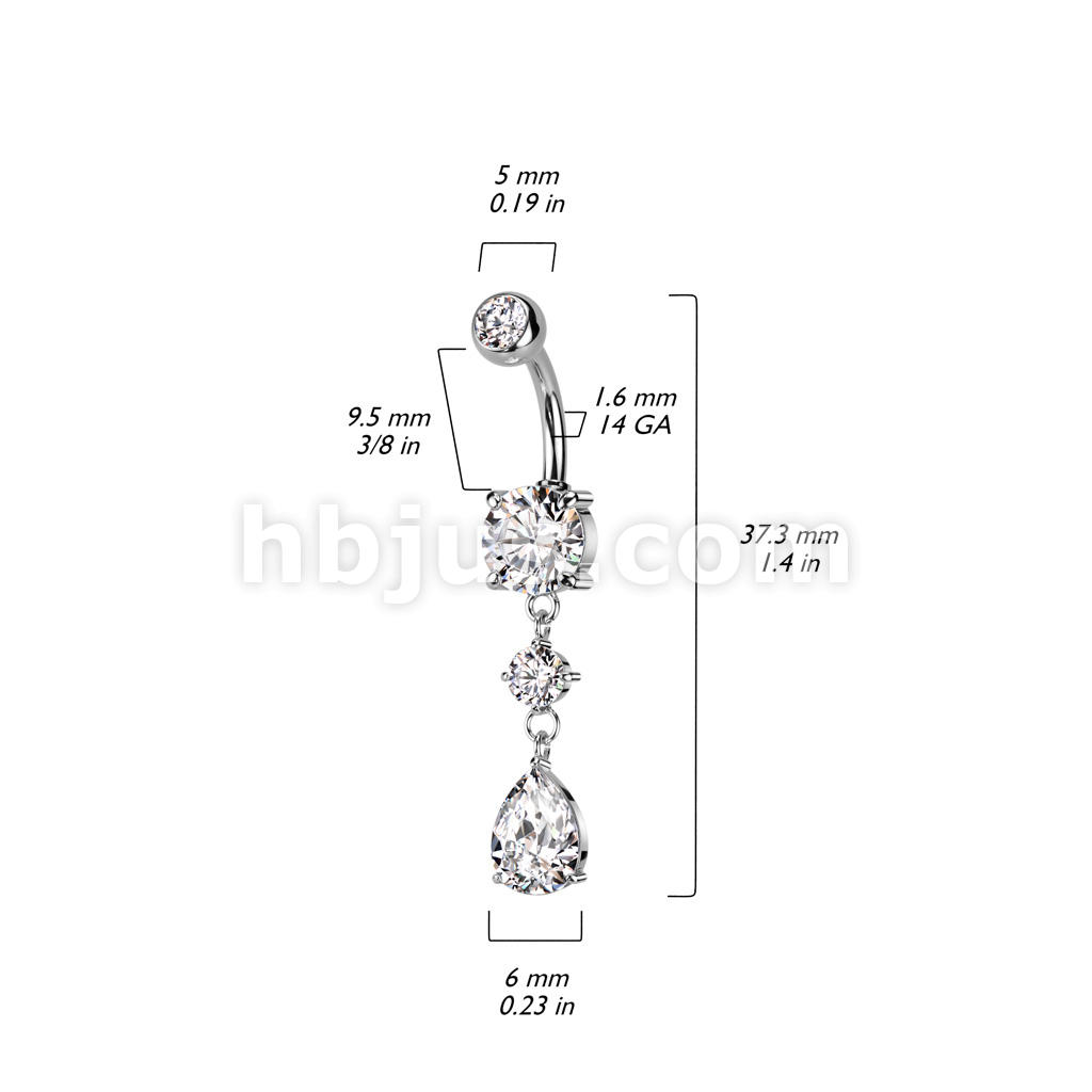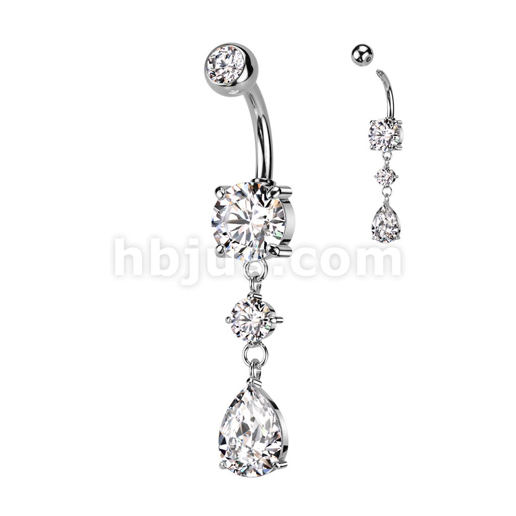 316L Surgical Steel Belly Button Ring Tear Drop CZ Dangle Belly Button Ring