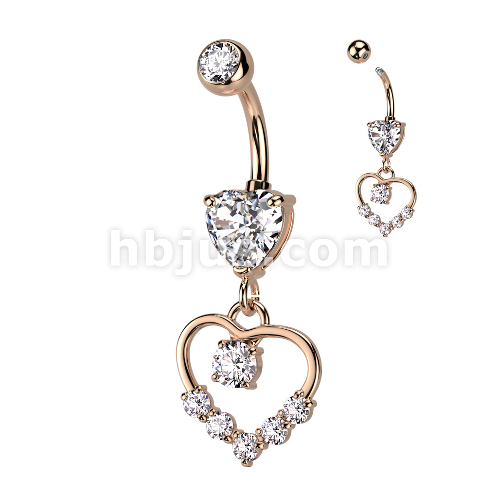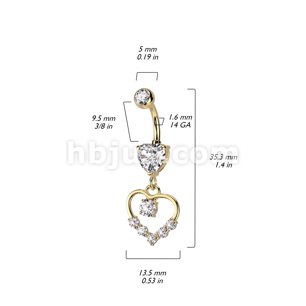 316L Surgical Steel Heart Shaped CZ With Hollow Heart Pave Dangle Belly Button Ring