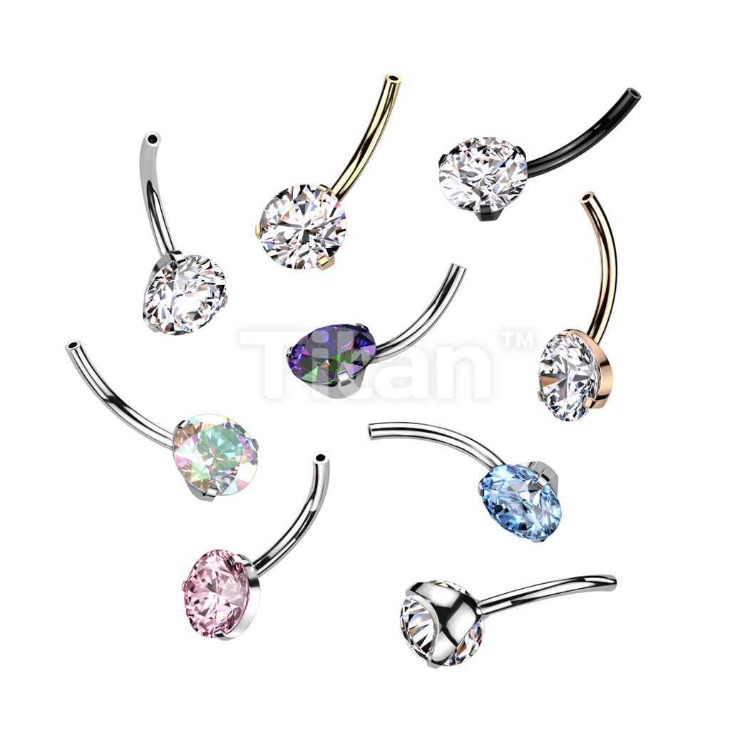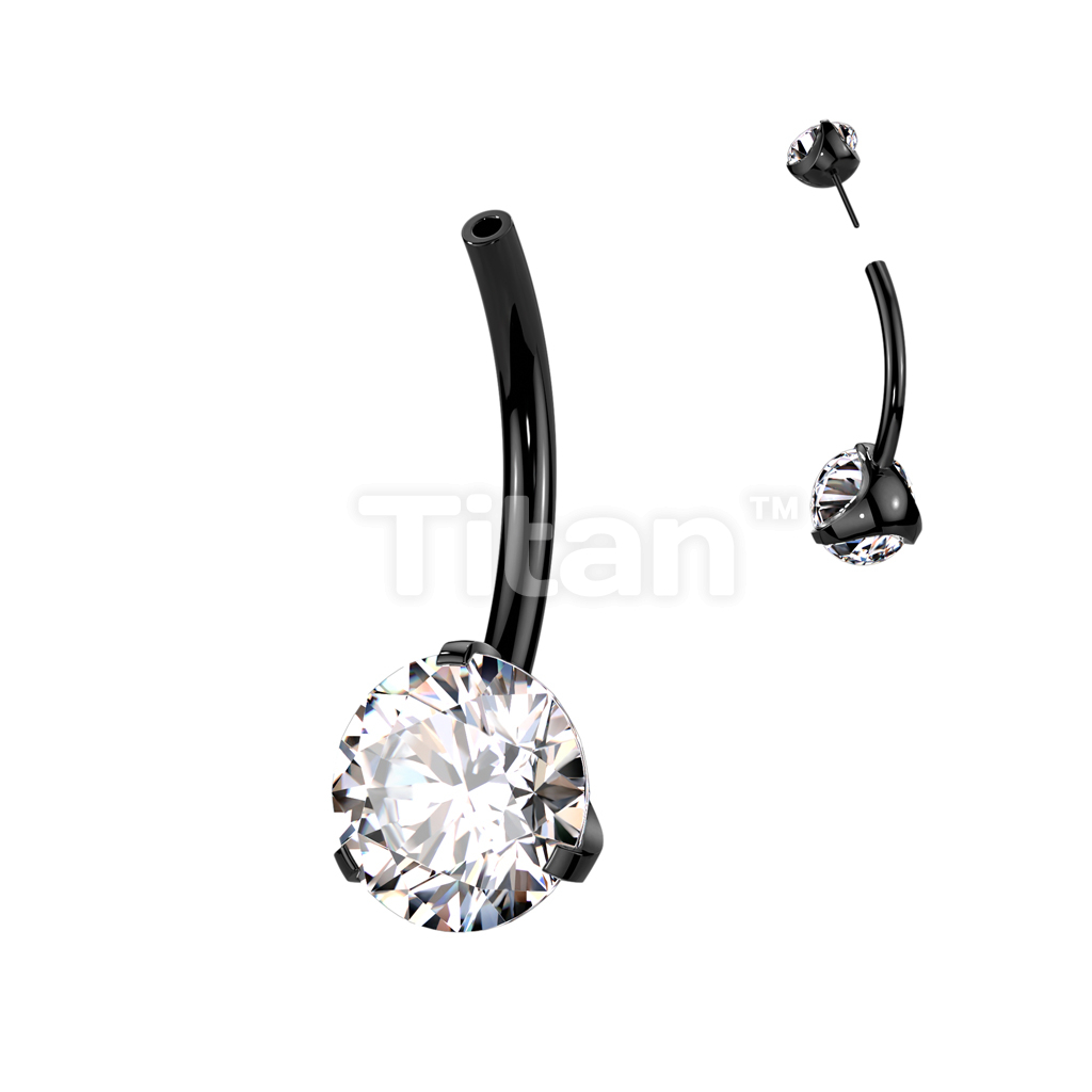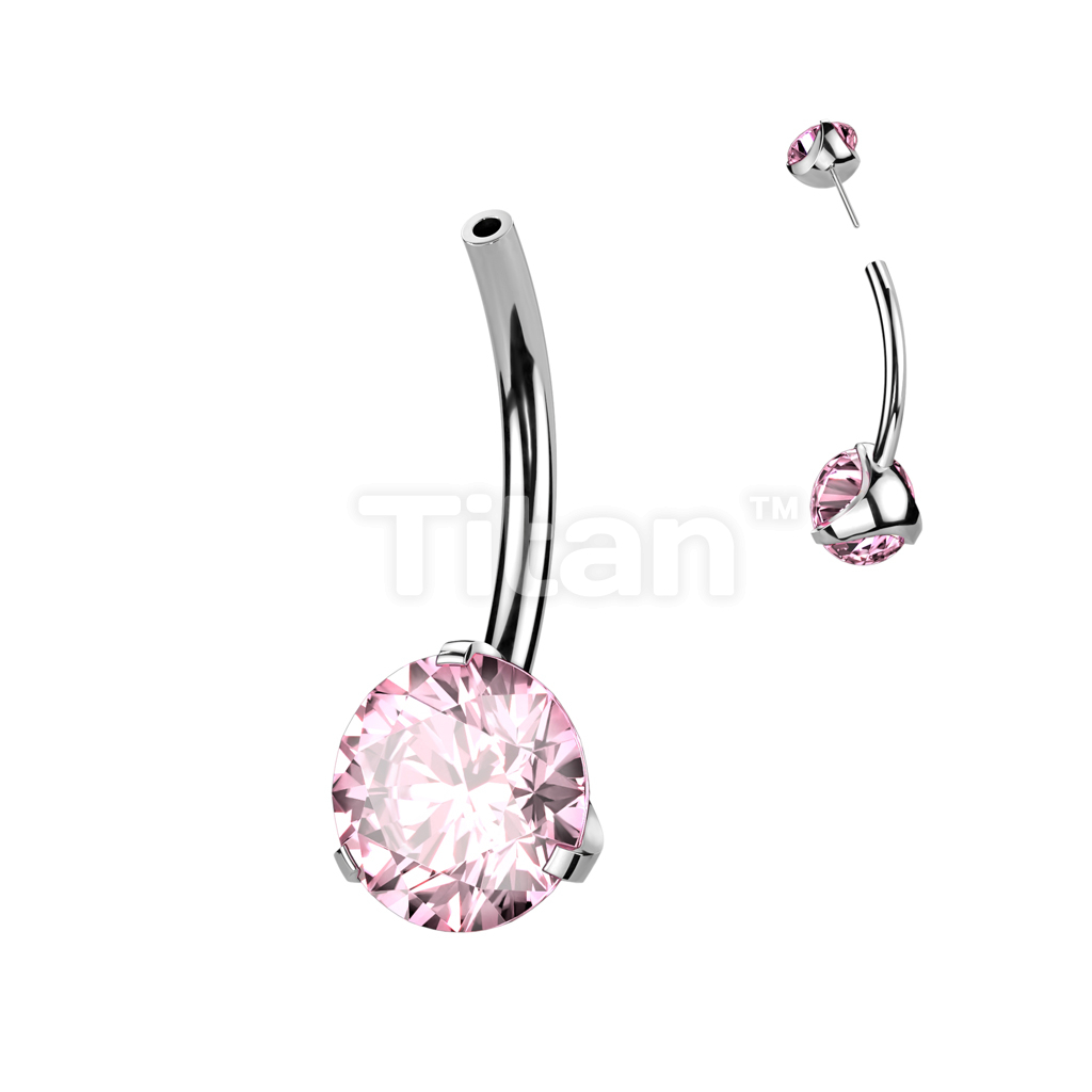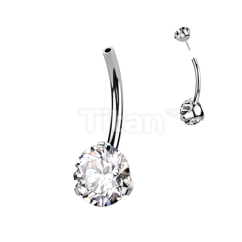 Implant Grade Titanium Threadless Push In Belly Button Pin With One Fixed CZ Prong Set Ball