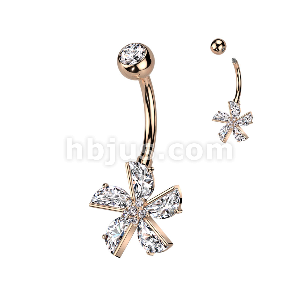 316L Surgical Steel CZ Flower With CZ Pave Center Belly Button Ring