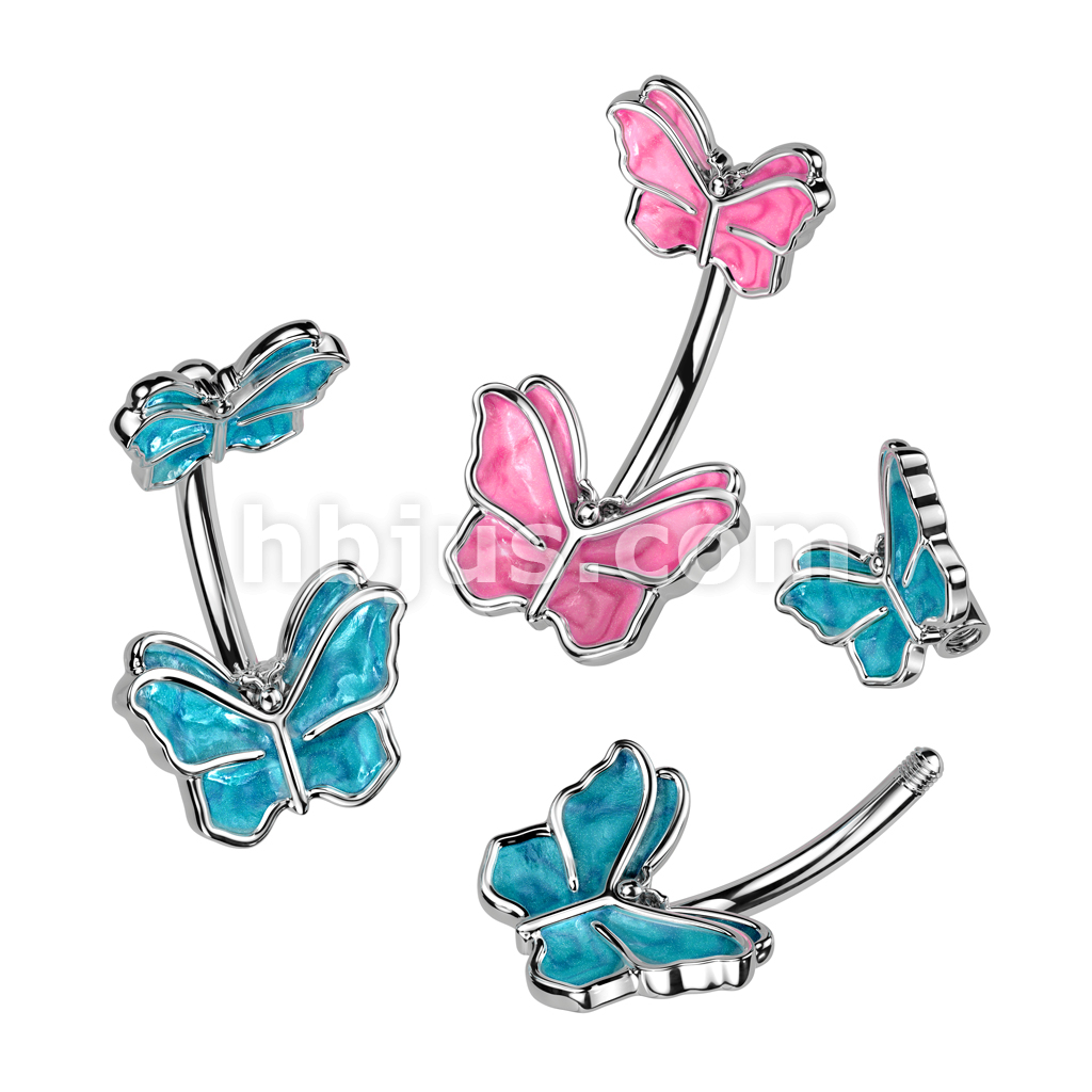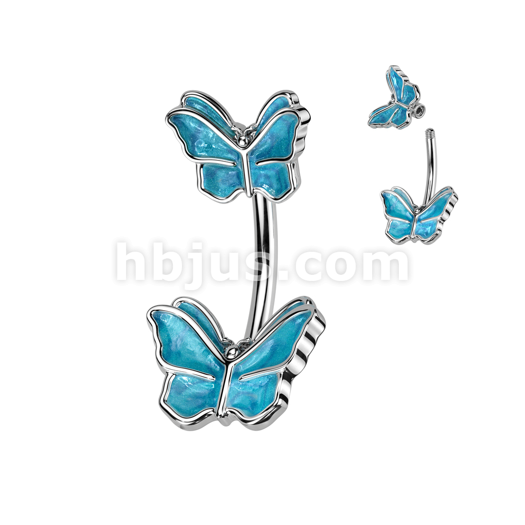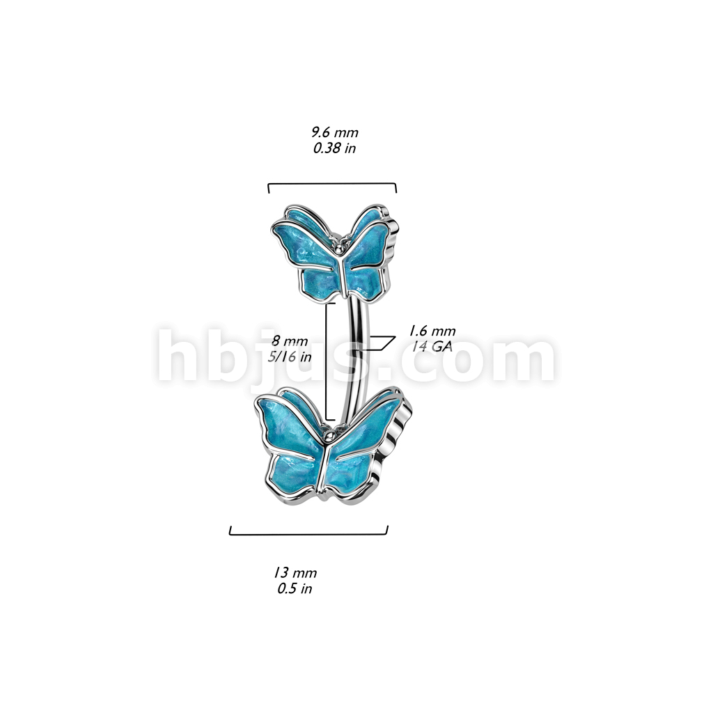 316L Surgical Steel Belly Button Ring With Double Butterfly