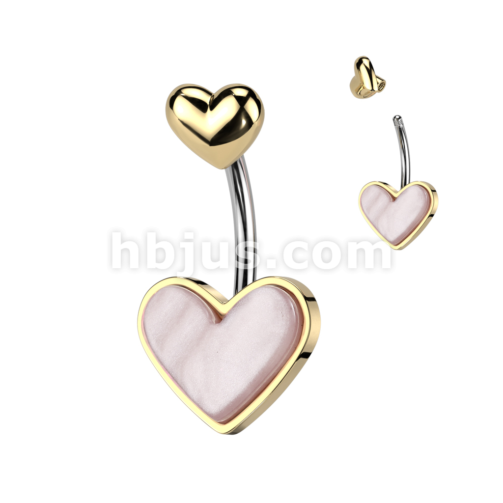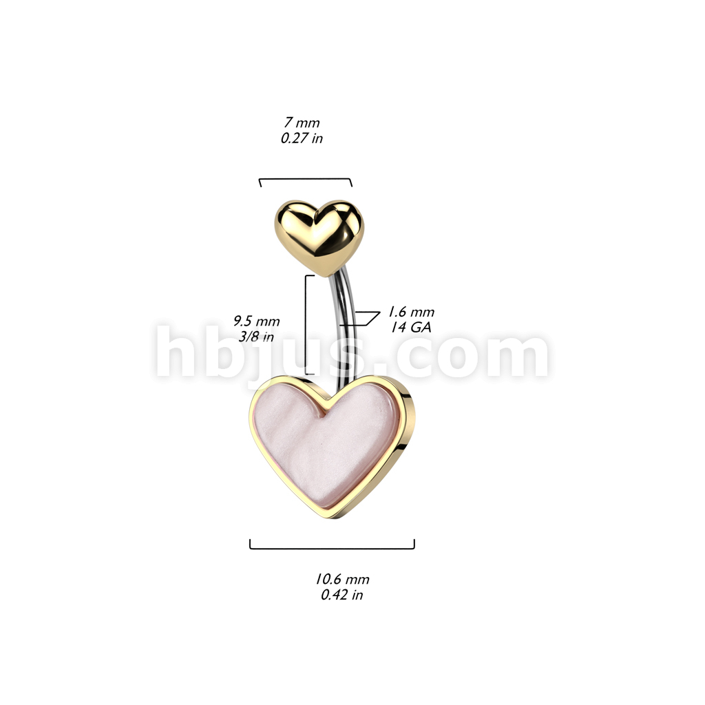 316L Stainless Steel Double Heart Belly Button Ring With Mother of Pearl Heart