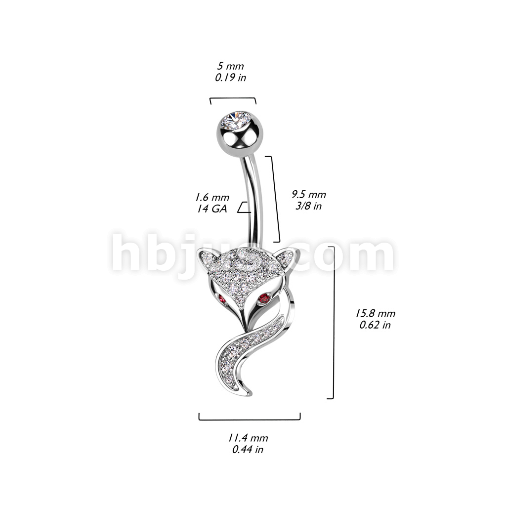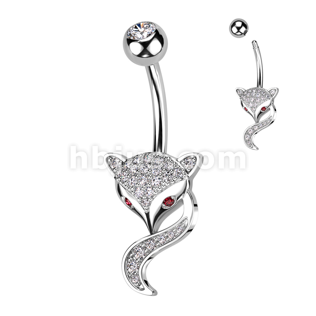 316L Surgical Steel Fox Belly Ring With Pave CZ's and Red CZ Eyes