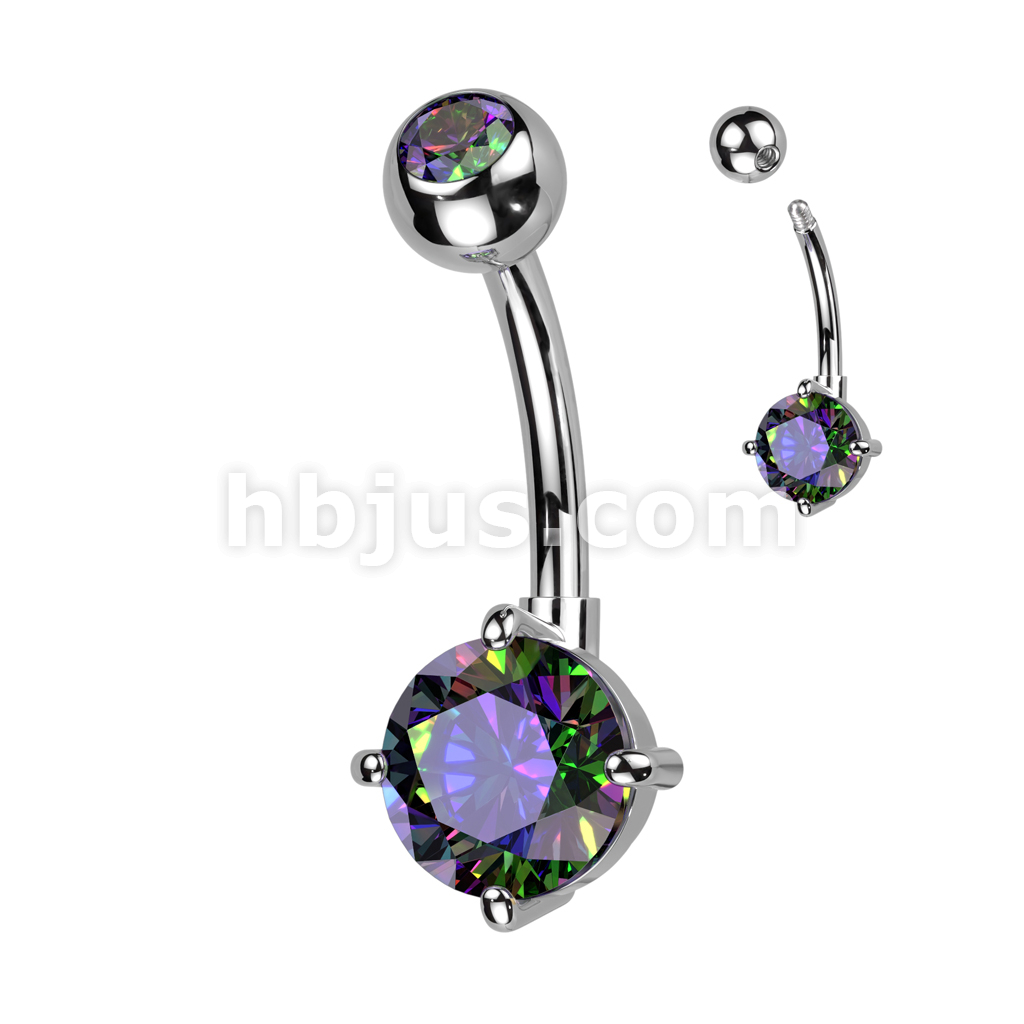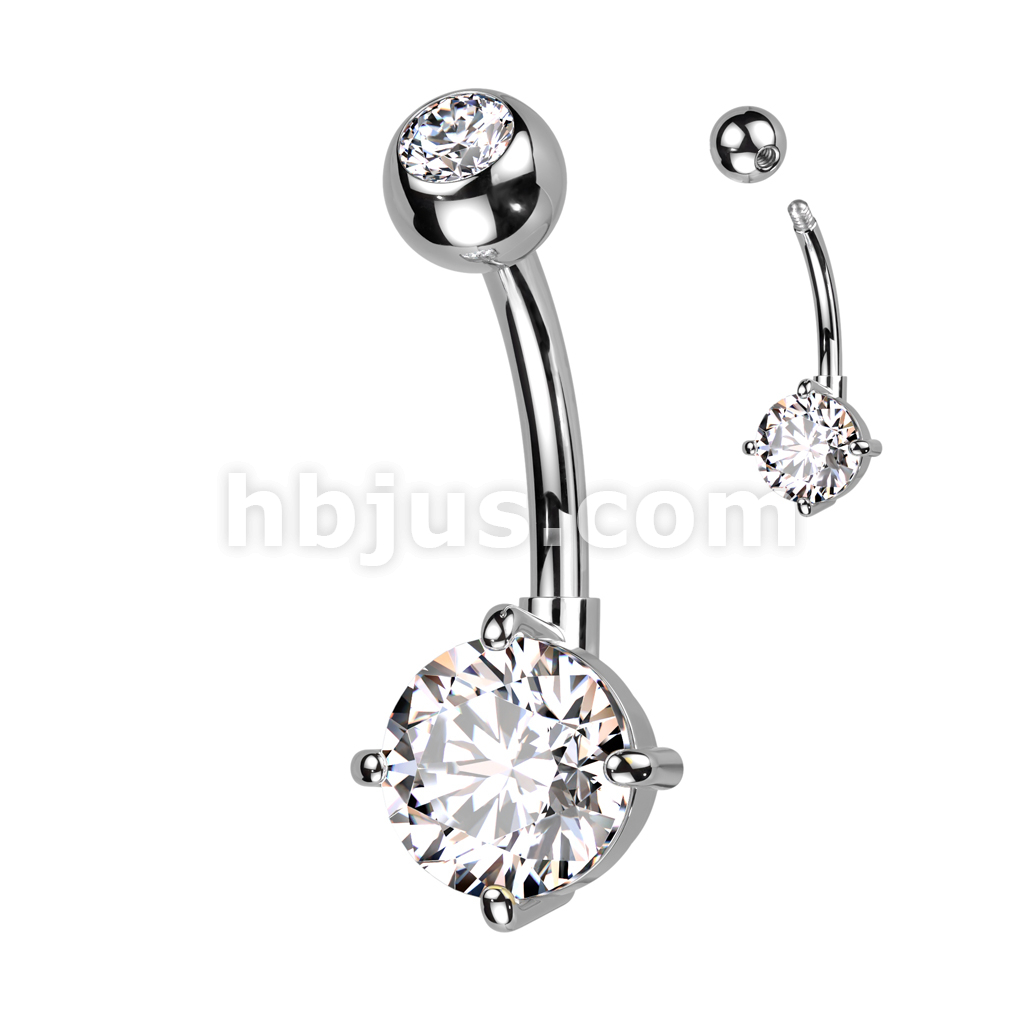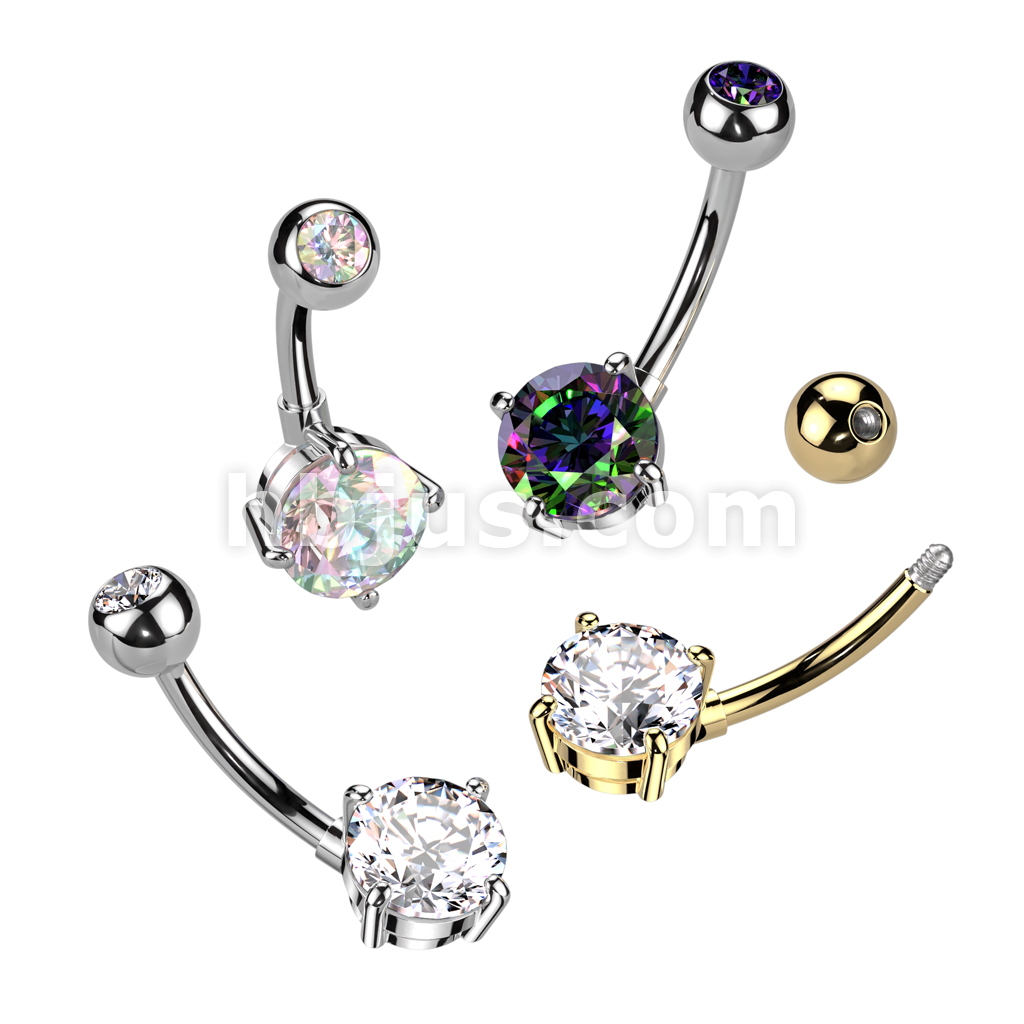 Implant Grade Titanium With Bezel Set CZ Top and Round Brass Prong Set CZ Belly Button Ring