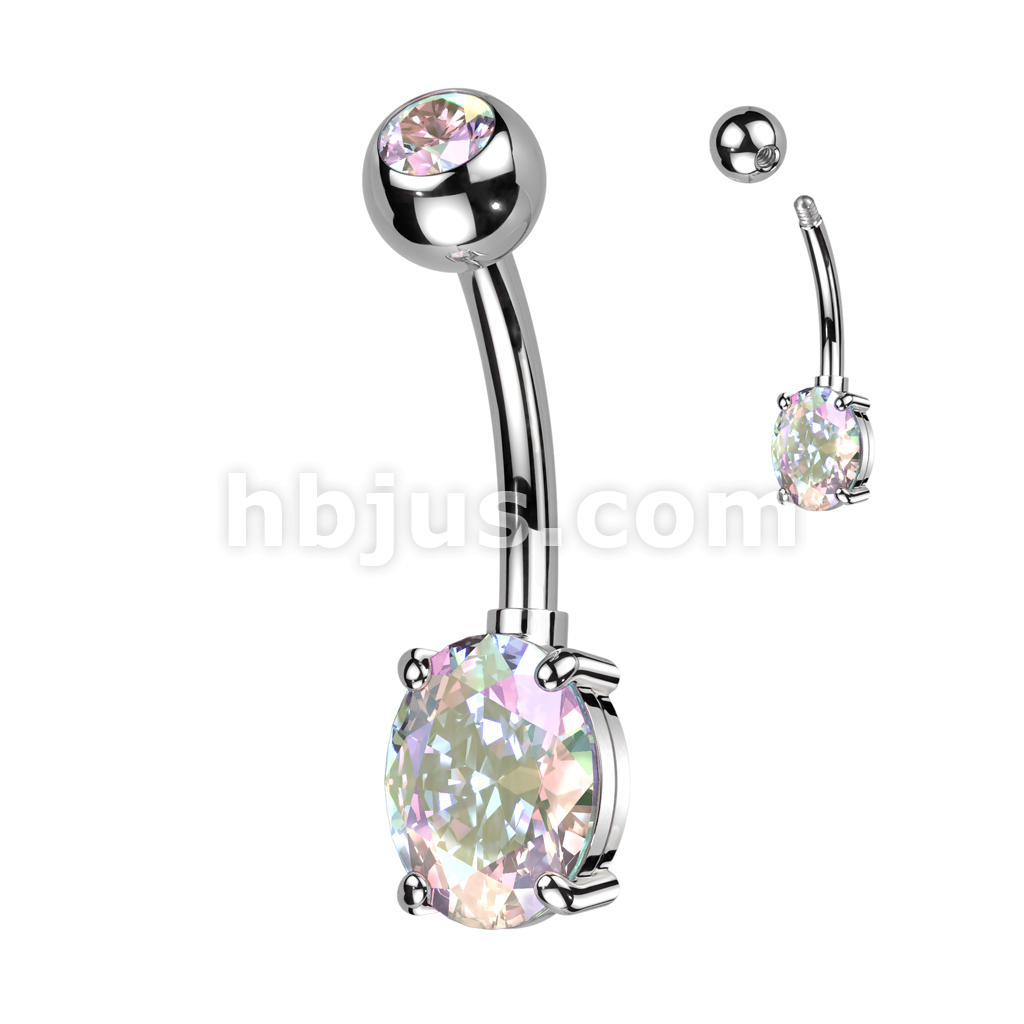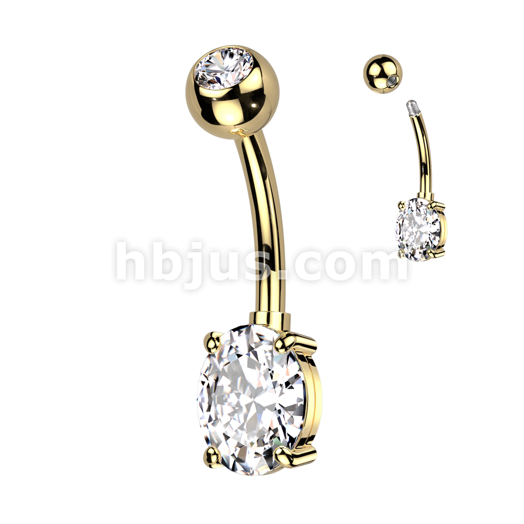Implant Grade Titanium With Pressed Fit CZ Top and Oval Brass Prong Set CZ Belly Button Ring