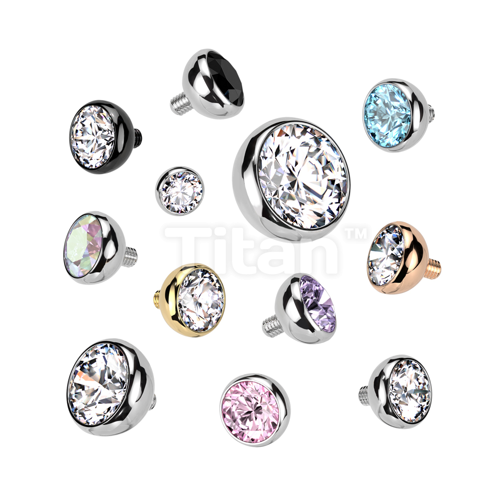 Implant Grade Titanium Internally Threaded Bezel Set Gem Ball Top