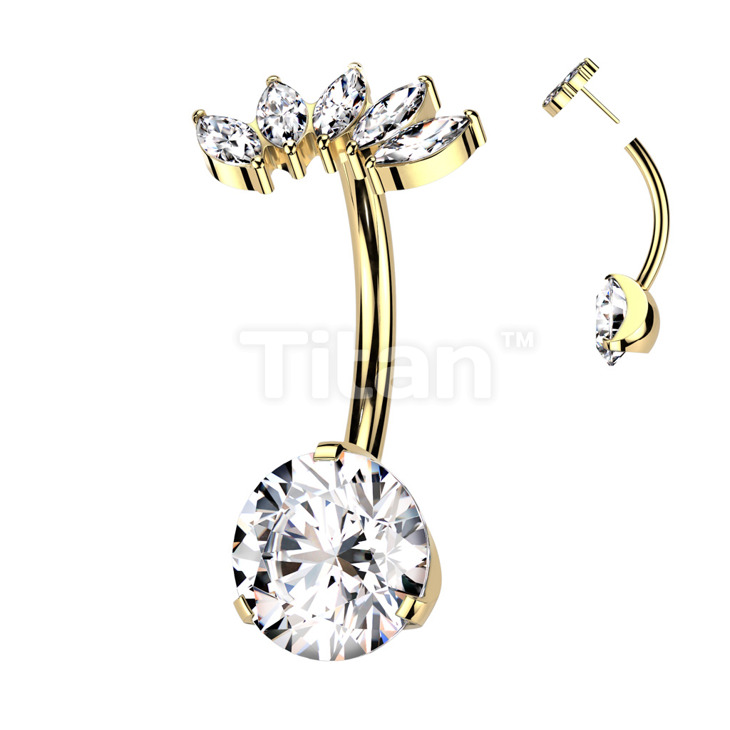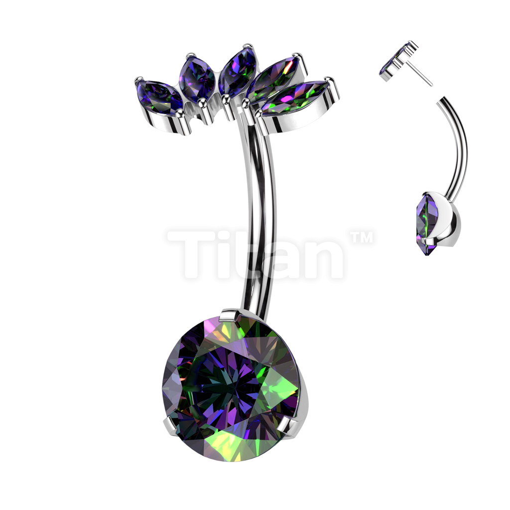 Implant Grade Titanium Threadless Push In Prong Set Bottom With 5 Marquise CZ Fan Top Belly Button Ring