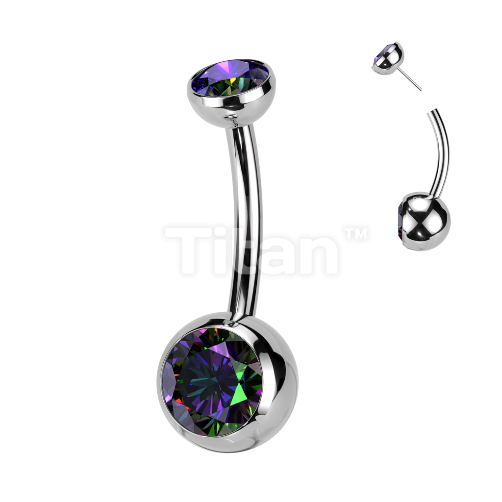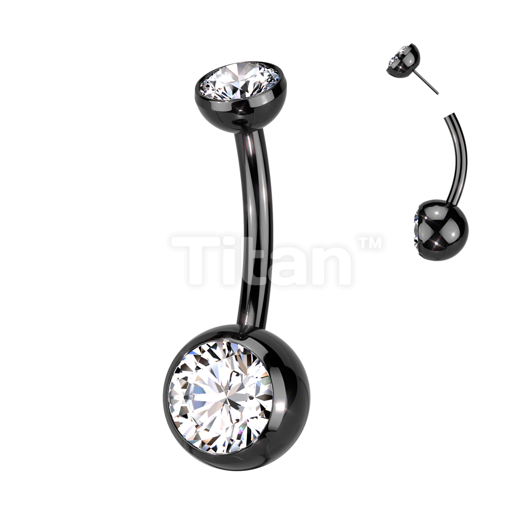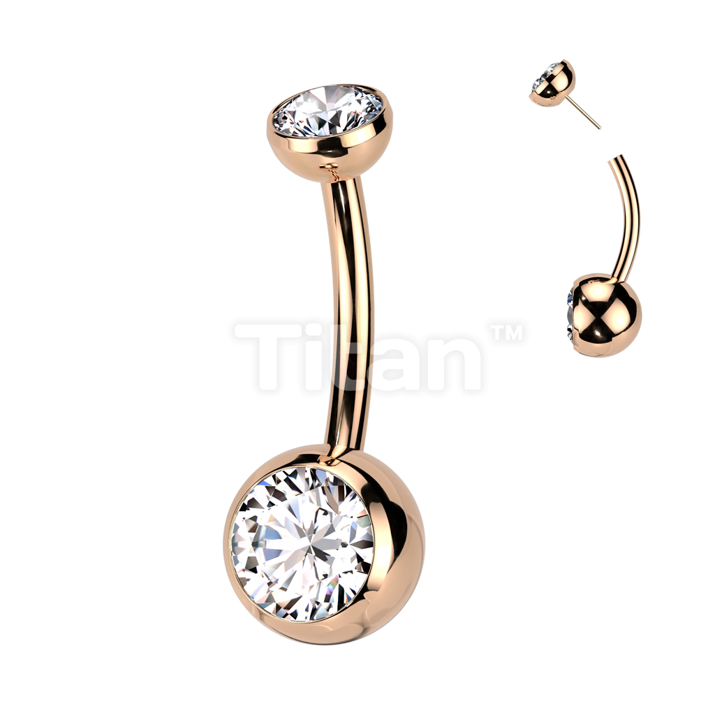 Implant Grade Titanium Threadless Push In Double CZ Bezel Set Belly Button Ring