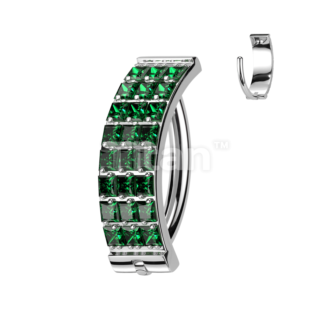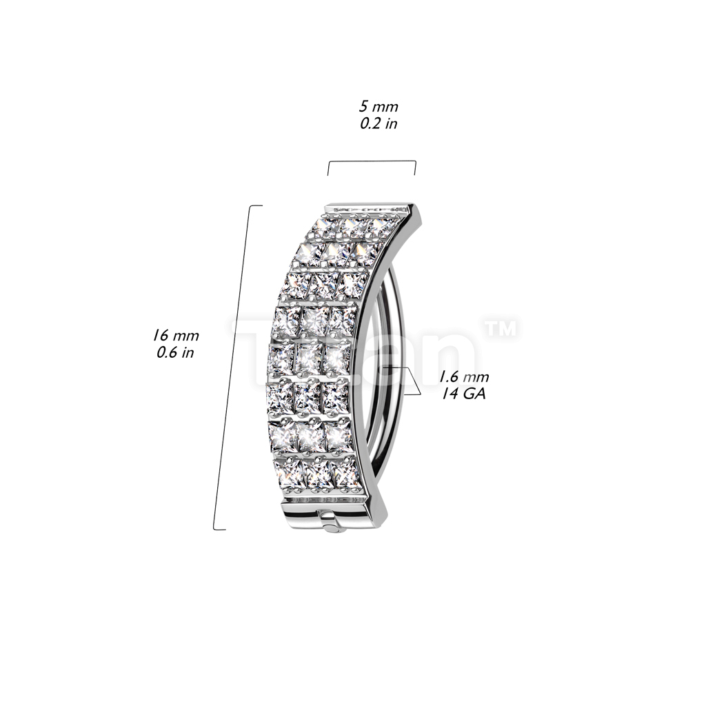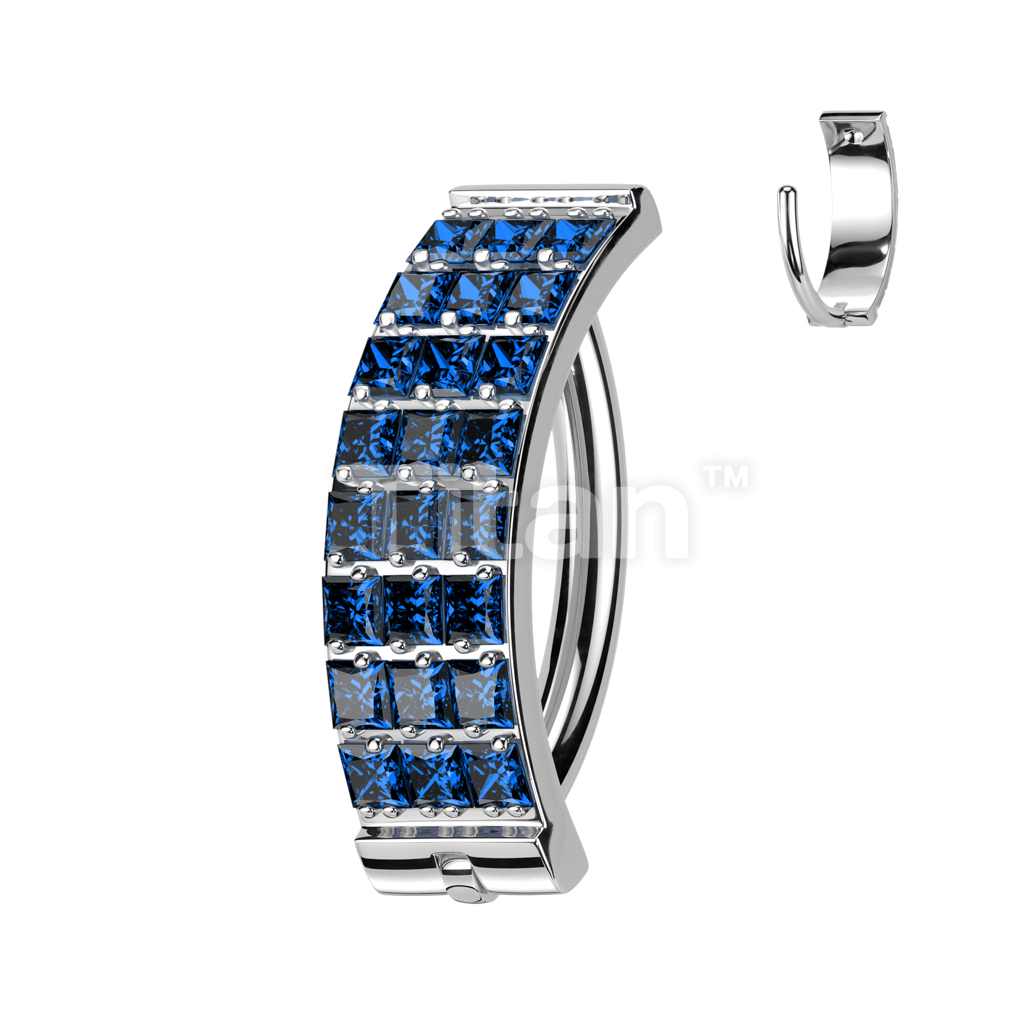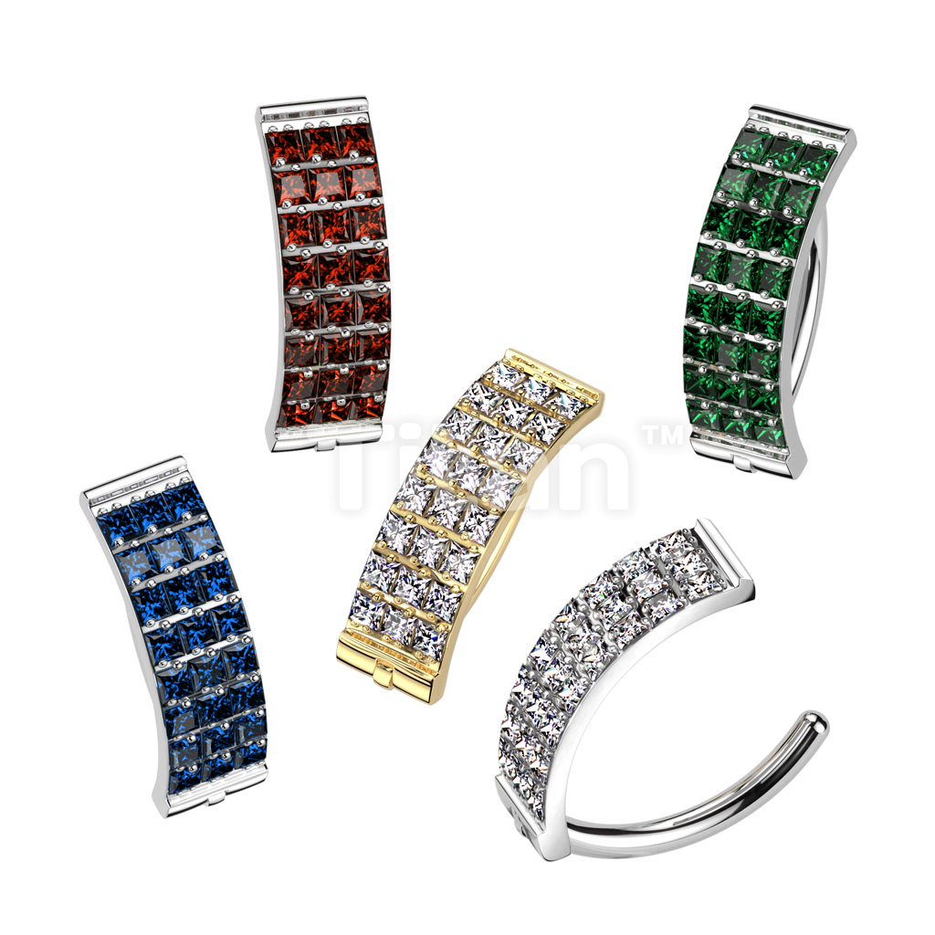 Implant Grade Titanium Hinged Hoop With 3 Pave Line Square CZ Belly Button Ring