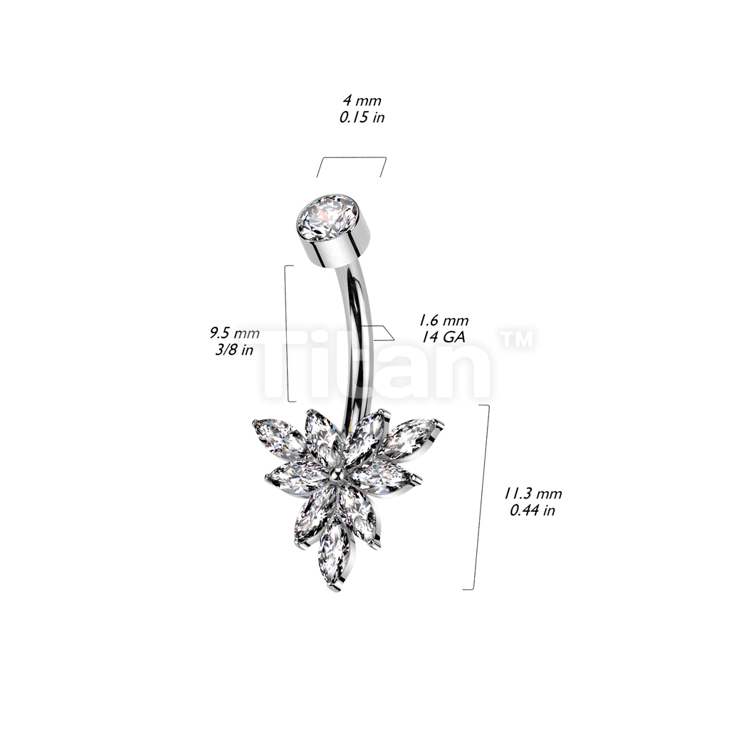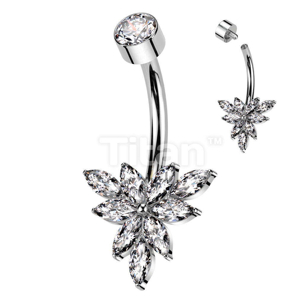 Implant Grade Titanium Internally Threaded Bezel Set CZ Top With Triangular Marquise CZ Flower Belly Button Ring