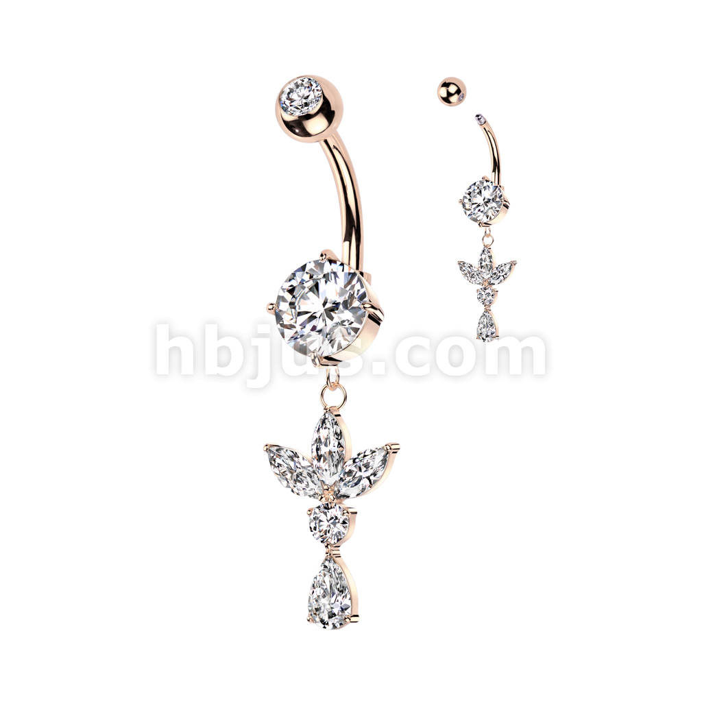 316L Surgical Steel Pressed Fit CZ Top and Round Prong Set CZ Bottom With 3 Marquise CZ Leaf and Pear CZ Dangle