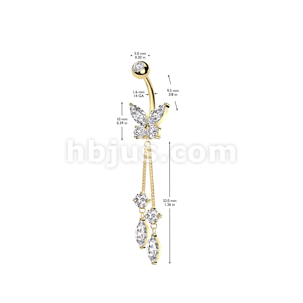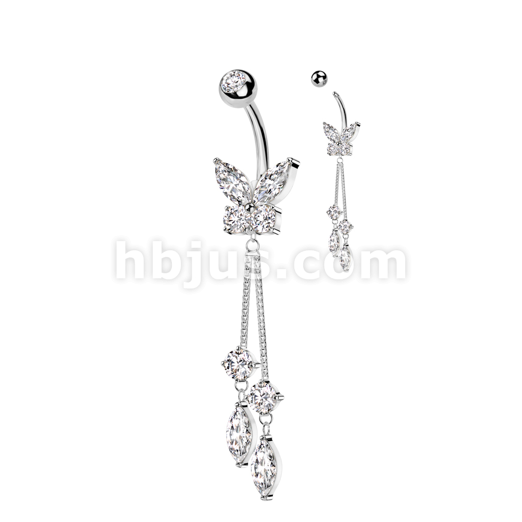 316L Surgical Steel CZ Butterfly With Double Round and Marquise Prong Set CZ Dangle