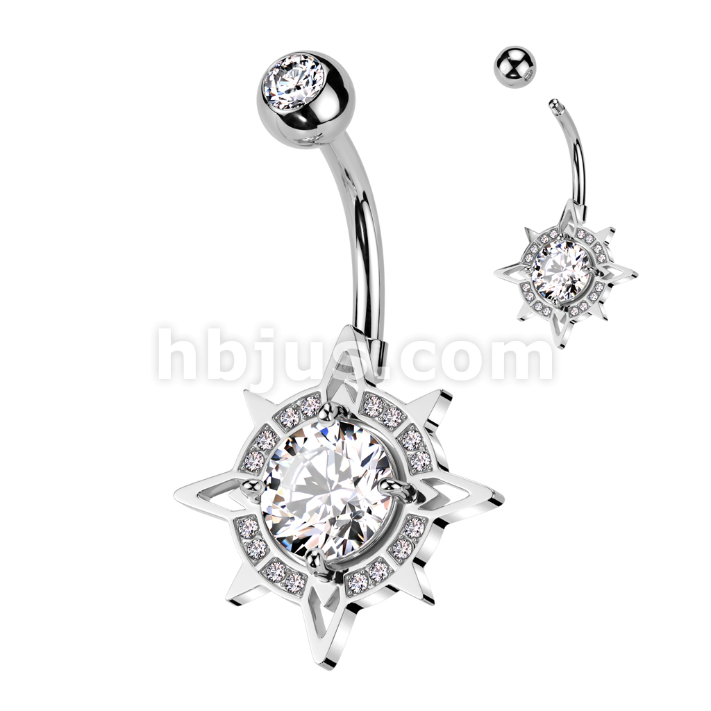 316L Surgical Steel CZ Center With CZ Edge Compass Belly Button Ring
