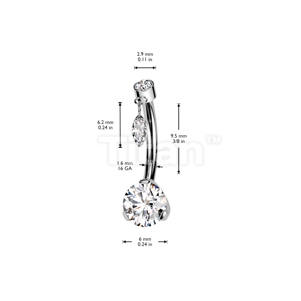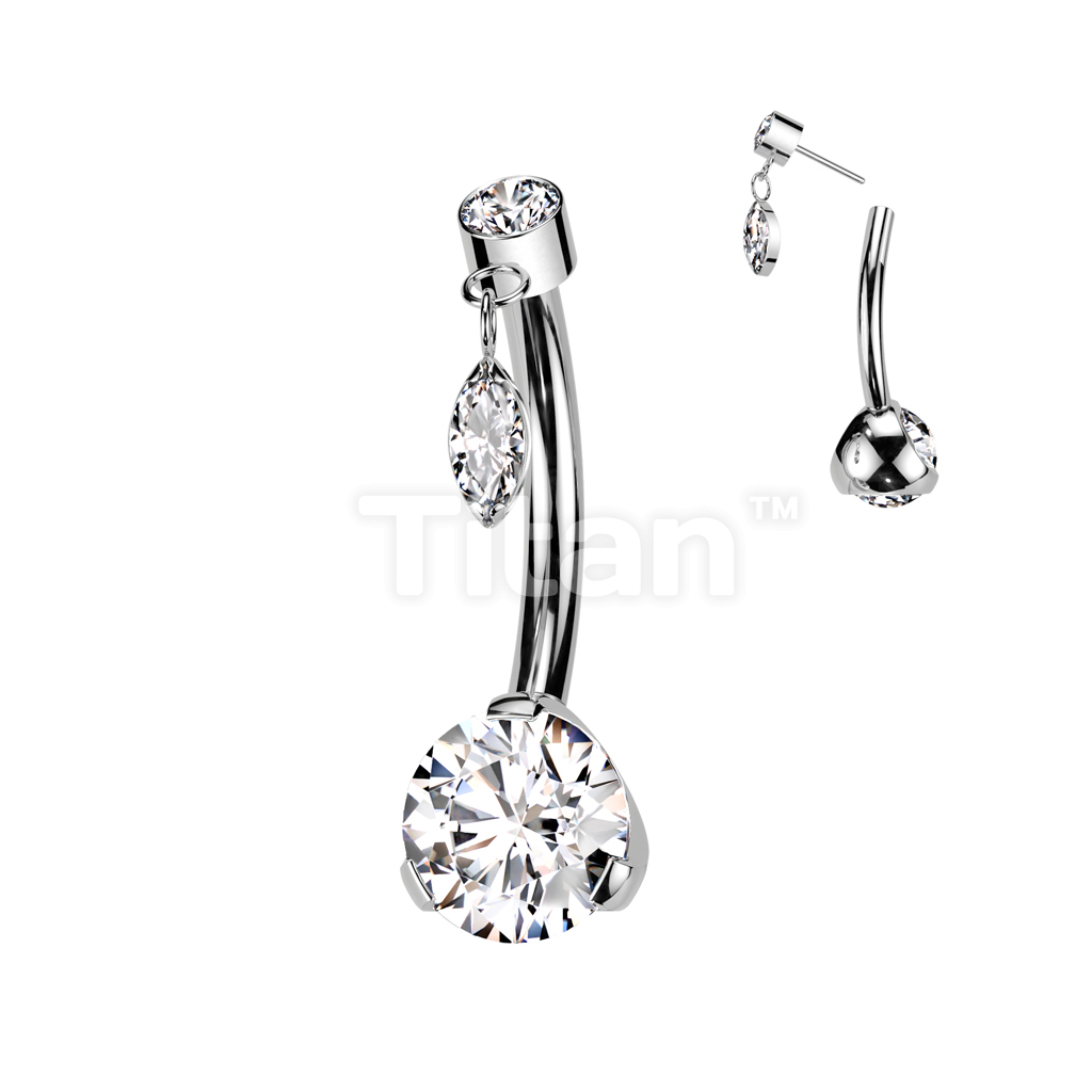 Implant Grade Titanium Threadless Push In Prong Set Bottom With Bezel Set CZ and Marquise CZ Dangle Top