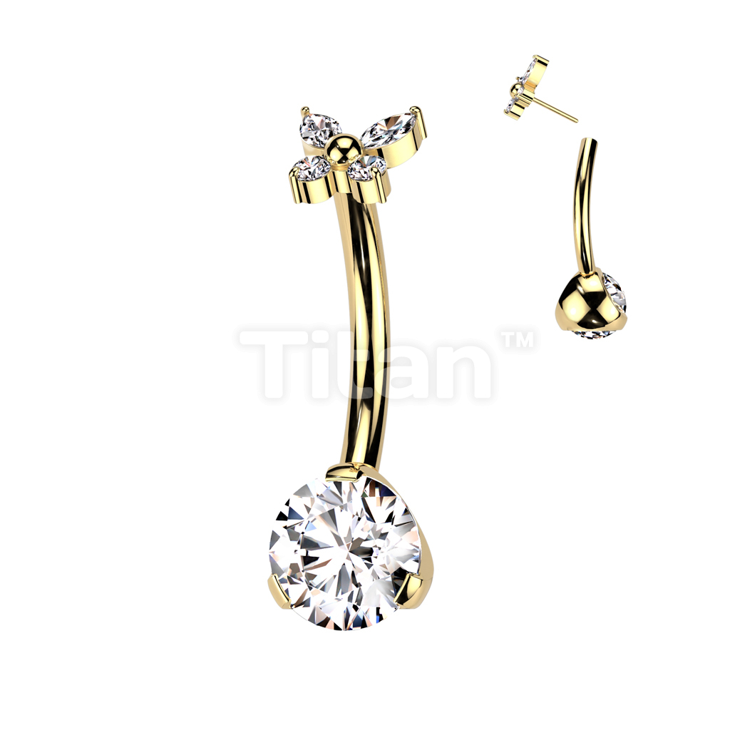 Implant Grade Titanium Threadless Push In Prong Set Bottom With CZ Butterfly Top