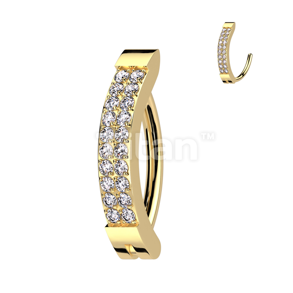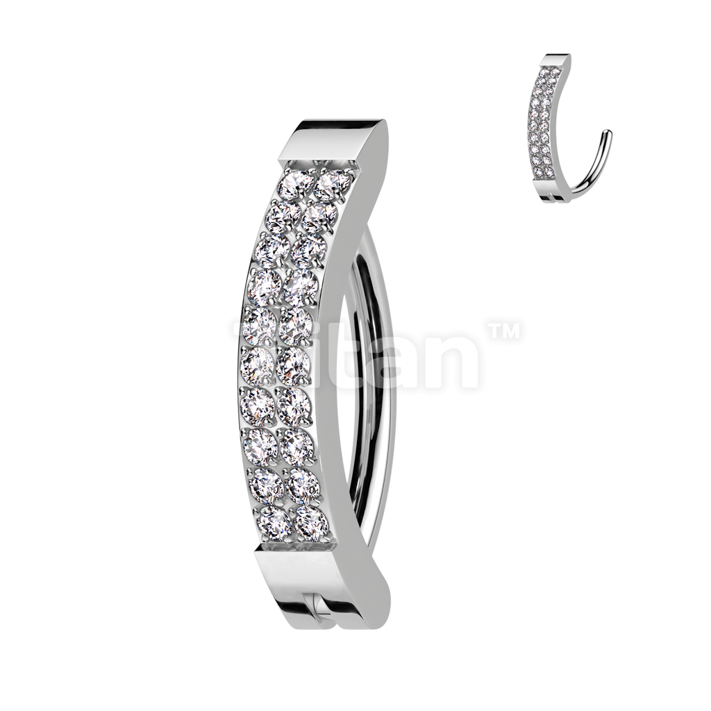 Implant Grade Titanium Hinged Hoop With Double Line CNC Set CZ Belly Button Ring