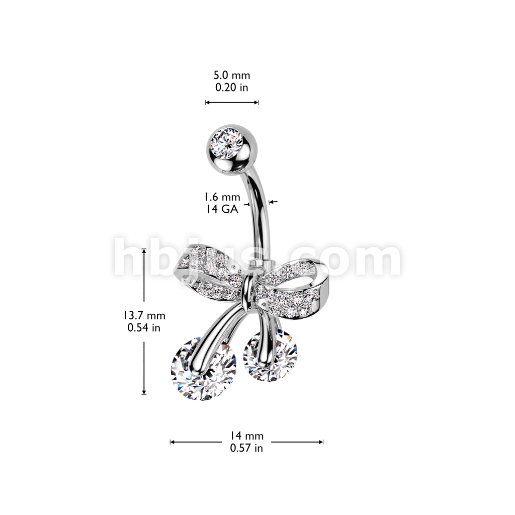 316L Surgical Steel CZ Pave Ribbon With Double CZ Belly Button Ring