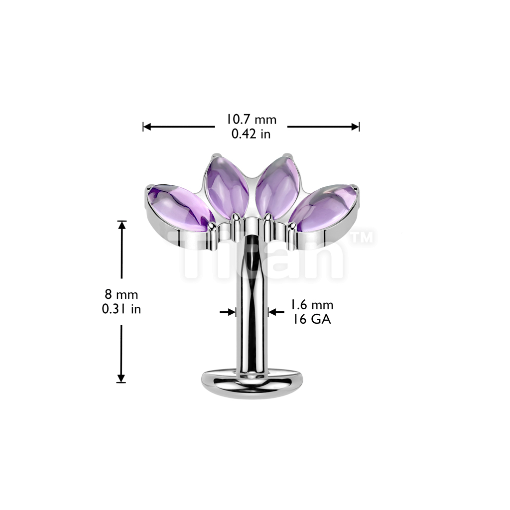 Implant Grade Titanium Threadless Floating Convex Base Belly Button Ring With 4 Marquise Natural Stone Fan Top