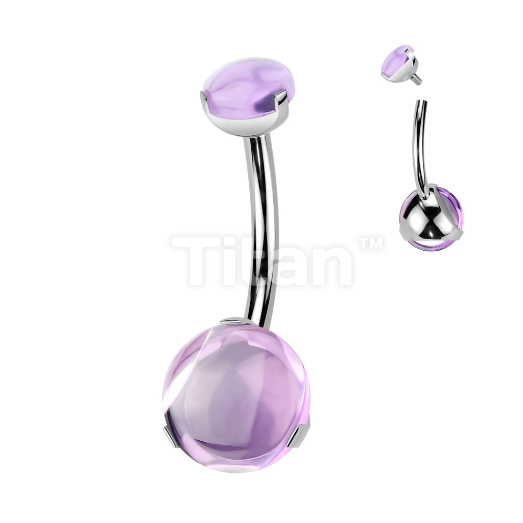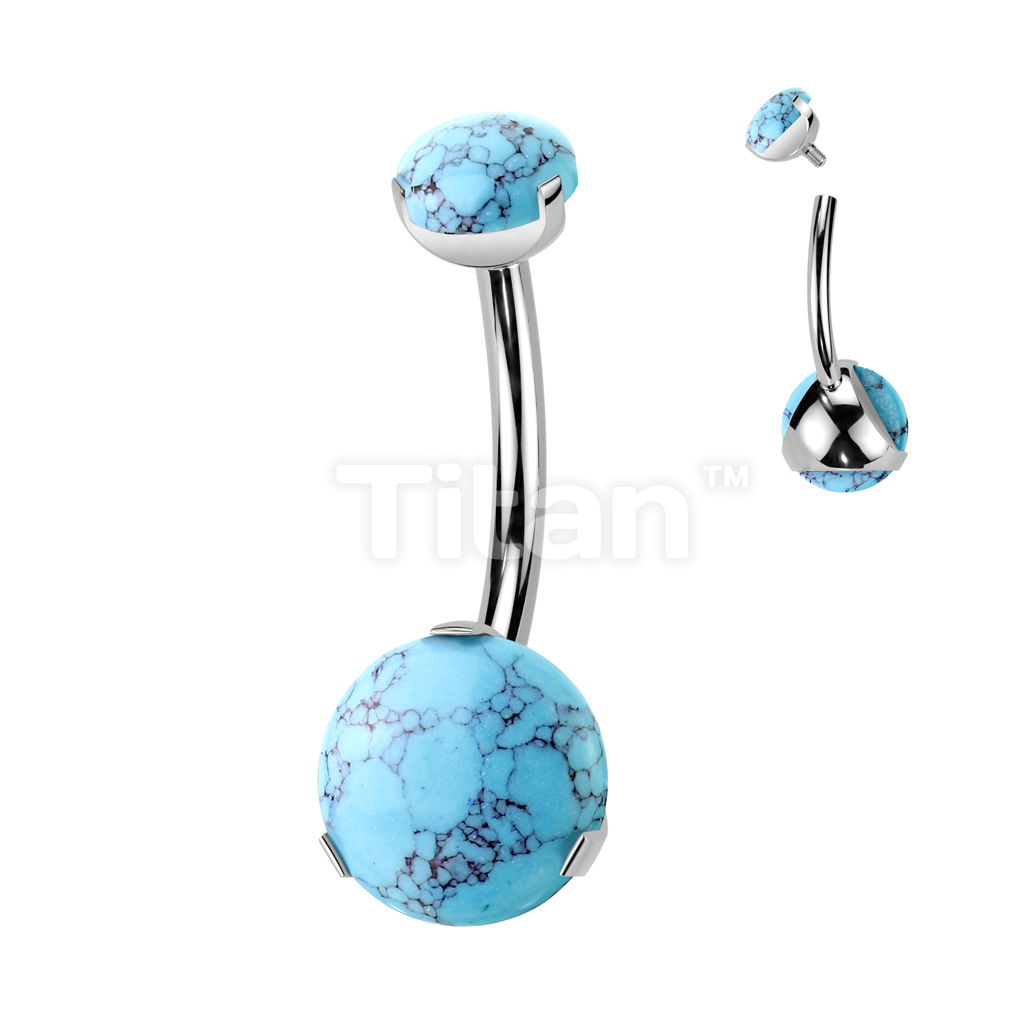 Implant Grade Titanium Internally Threaded Prong Set Natural Stone Belly Button Ring