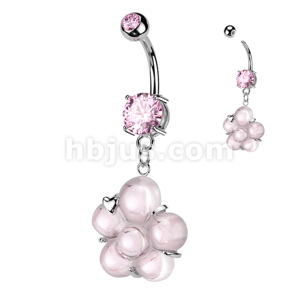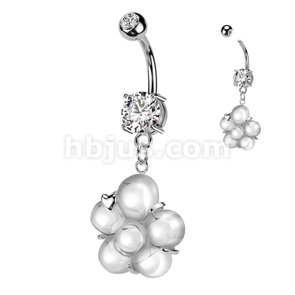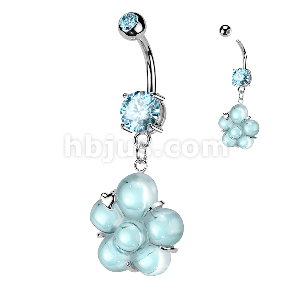 316L Surgical Steel Pressed Fit CZ Top and Round Prong Set CZ Bottom With Flower Dangle