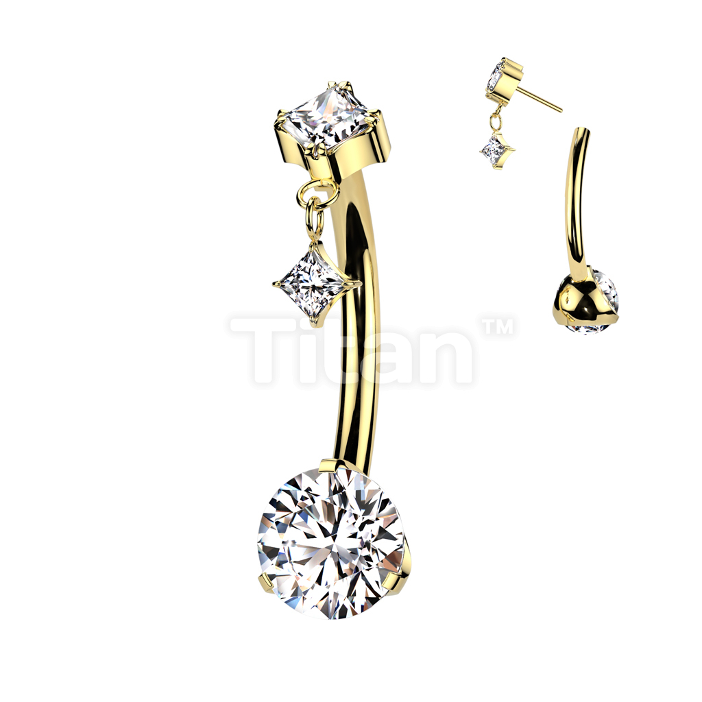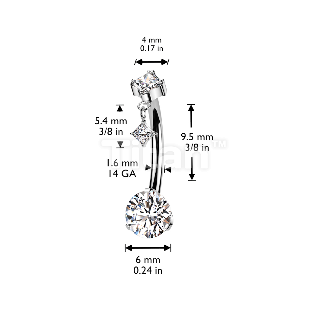 Implant Grade Titanium Threadless Push In Prong Set Bottom With Prong Set Diamond CZ Top And Prong Set Diamond CZ Dangle