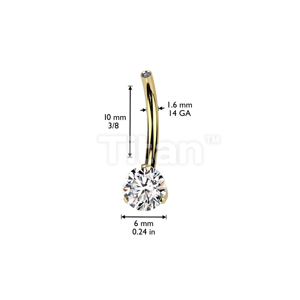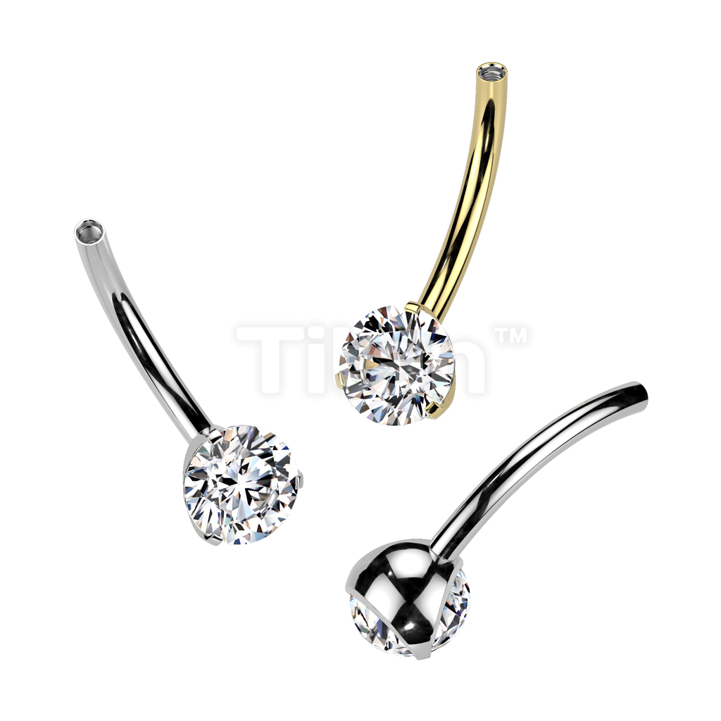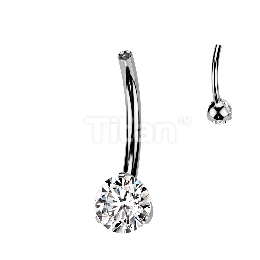 Implant Grade Titanium Internally Threaded Belly Button Pin With One Fixed Prong Set CZ