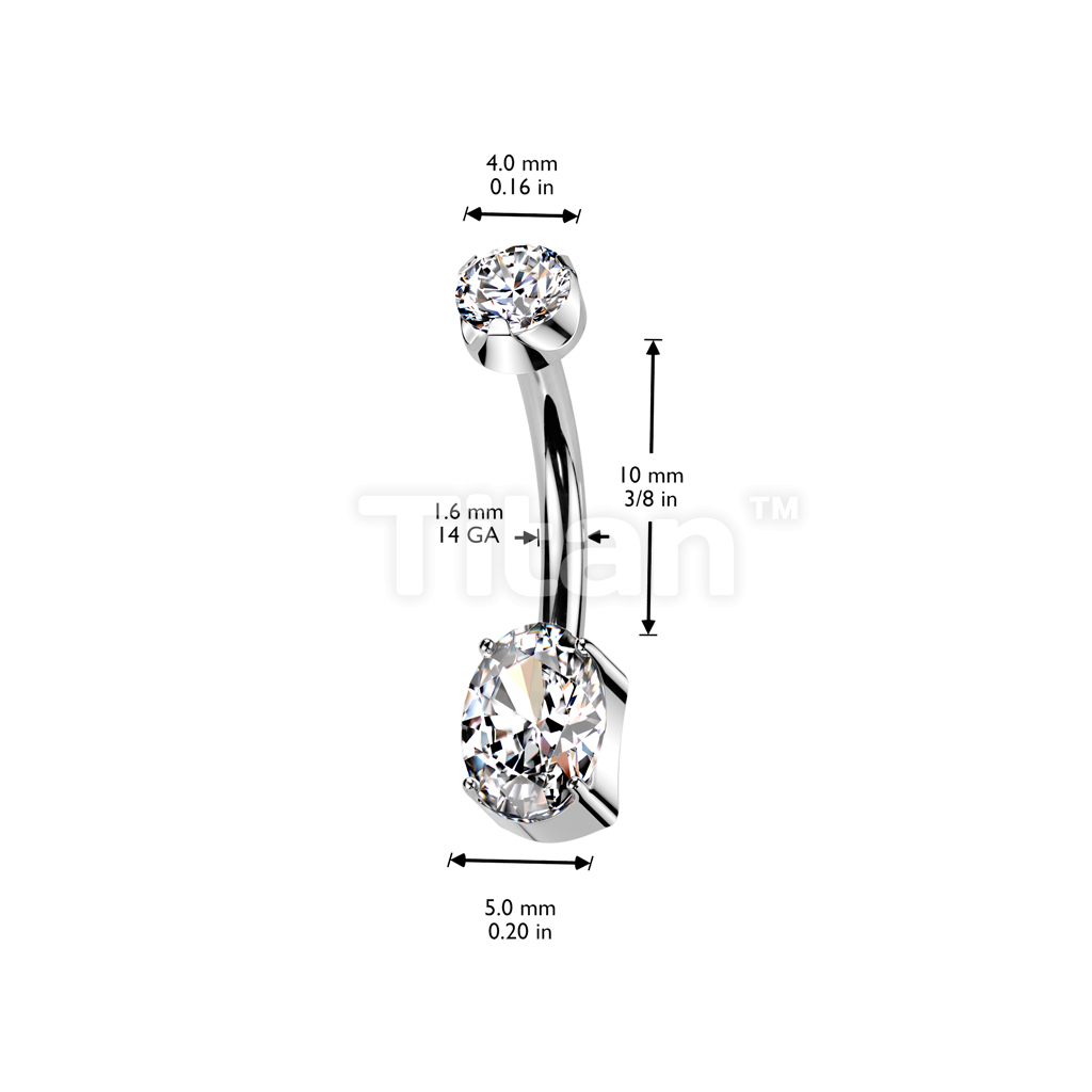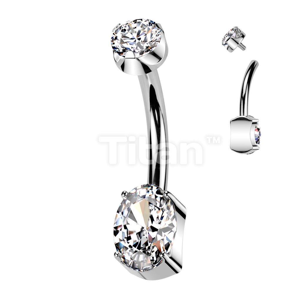 Implant Grade Titanium Internally Threaded Prong Set Oval CZ Bottom With CZ Prong Set Top Belly Button Ring