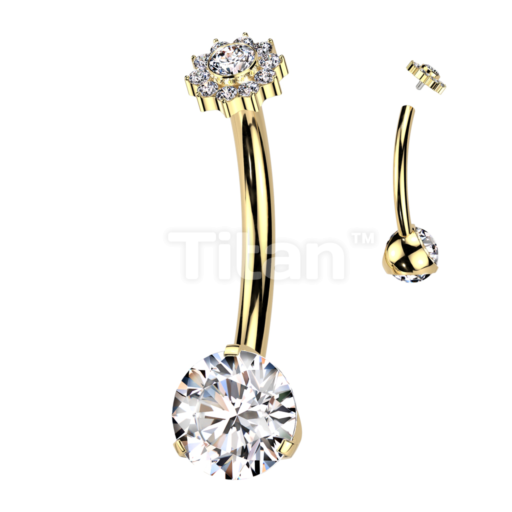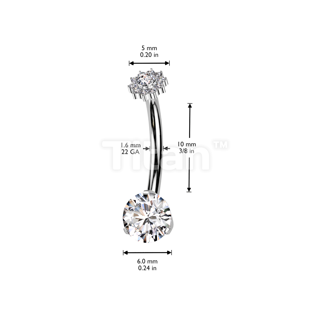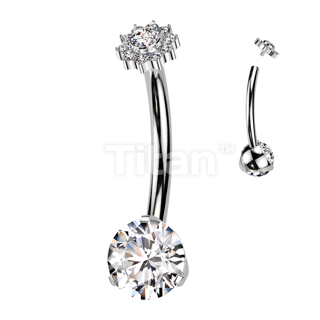Implant Grade Titanium Internally Threaded Prong Set CZ Bottom With CZ Pave Flower Top Belly Button Ring