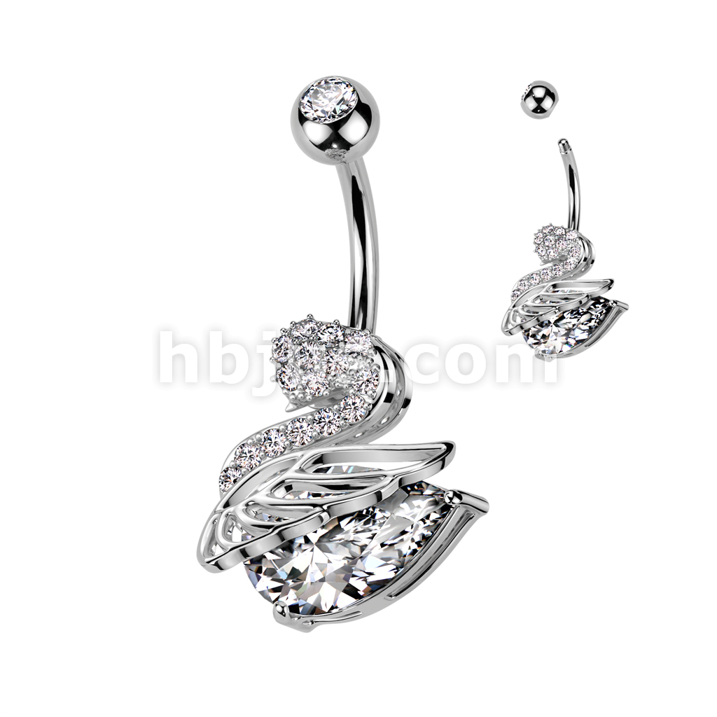 316L Surgical Steel CZ Swan With Wing Belly Button Ring
