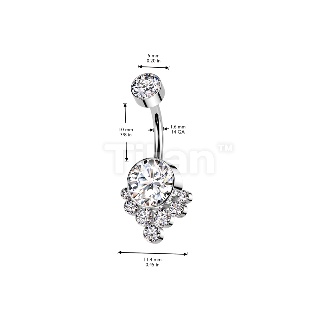 Implant Grade Titanium Internally Threaded Bezel Set Top and CZ Cluster Belly Button Ring