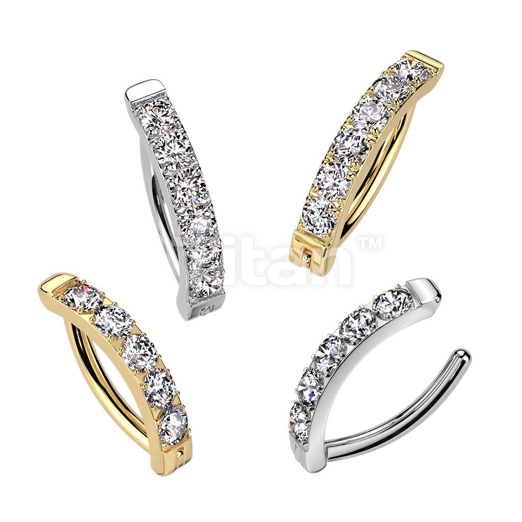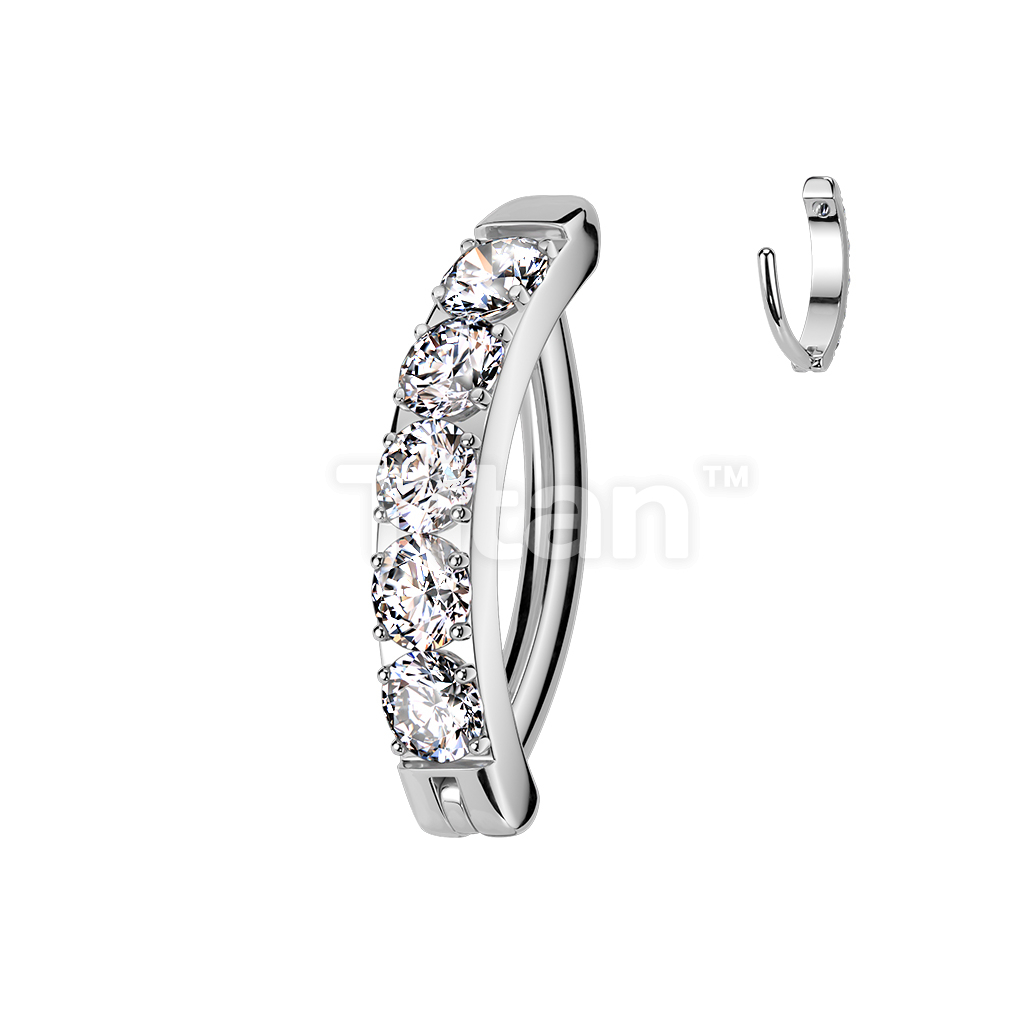 Implant Grade Titanium Hinged Hoop With CNC Set CZ Belly Button Ring