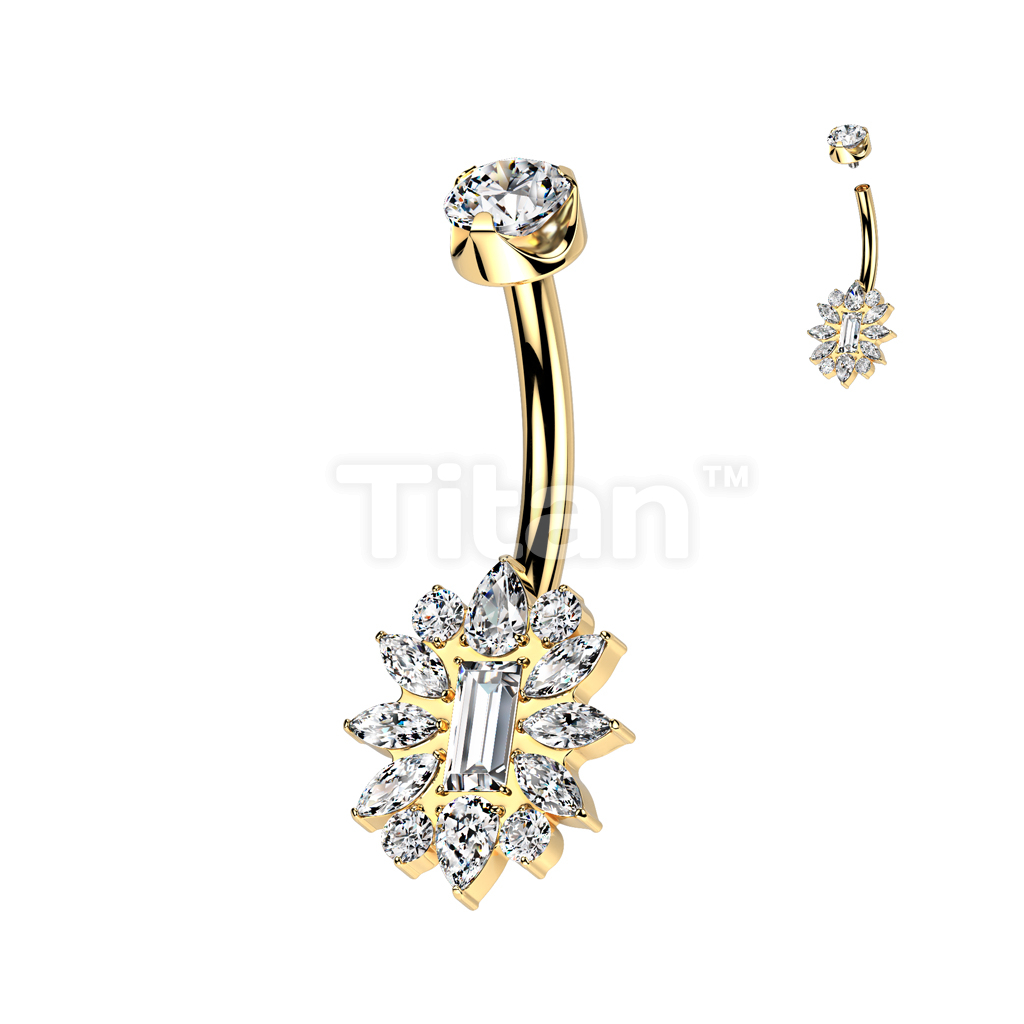 Implant Grade Titanium Internally Threaded CZ Cluster Flower With Round CZ Prong Set Top Belly Button Ring