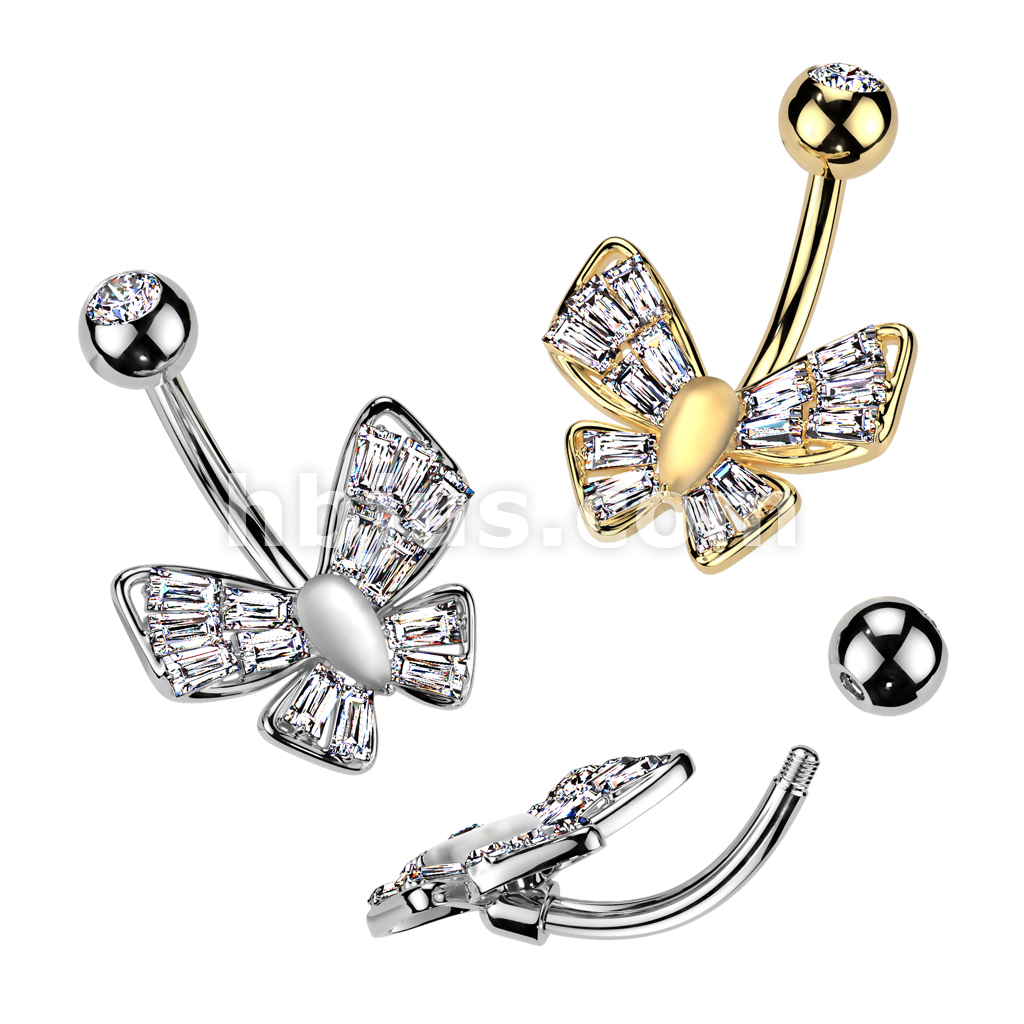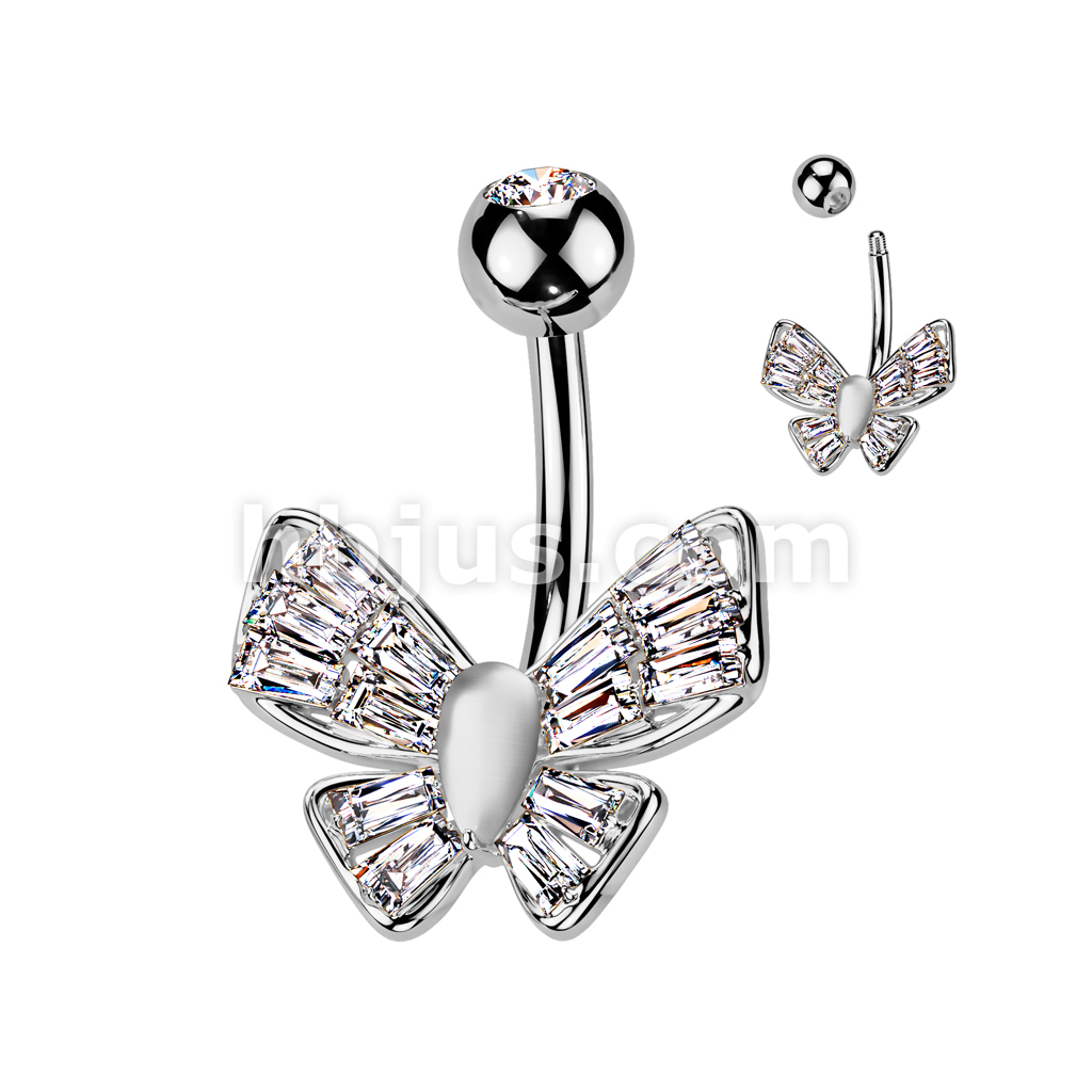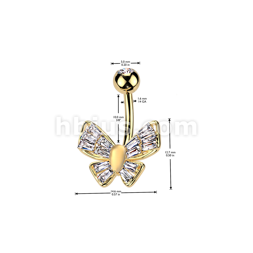316L Surgical Steel CZ Butterfly With Cat's Eye Stone Center Belly Button Navel Ring