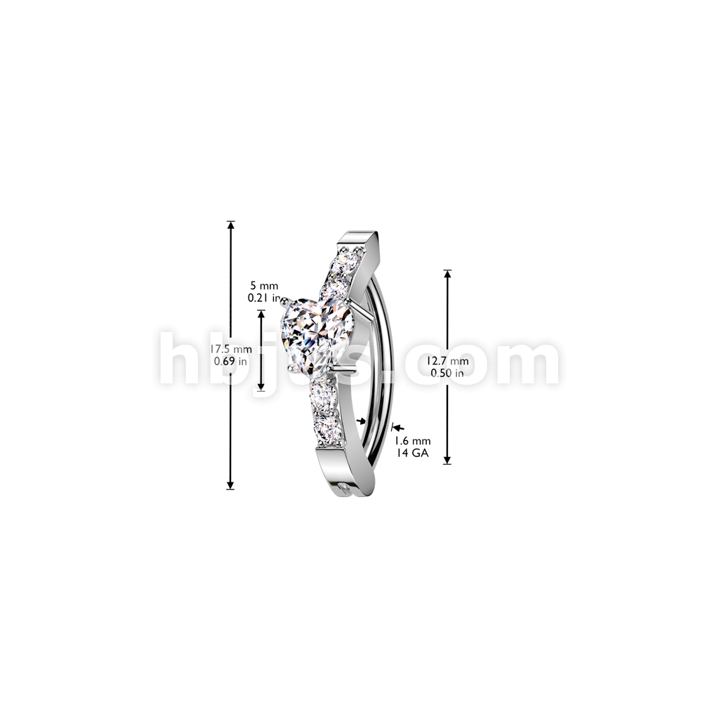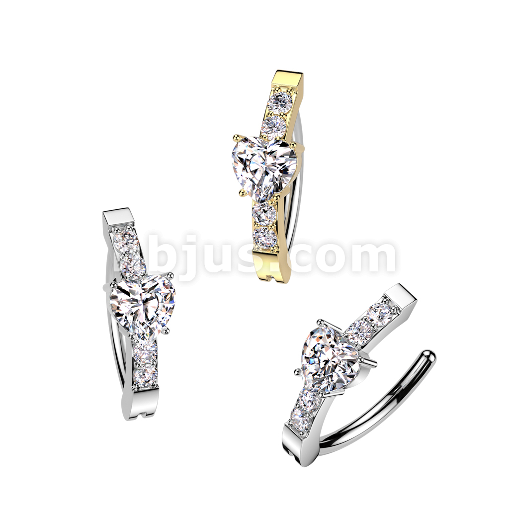 316L Surgical Steel Hinged Belly Button Ring With Round CNC CZ and Heart CZ Center