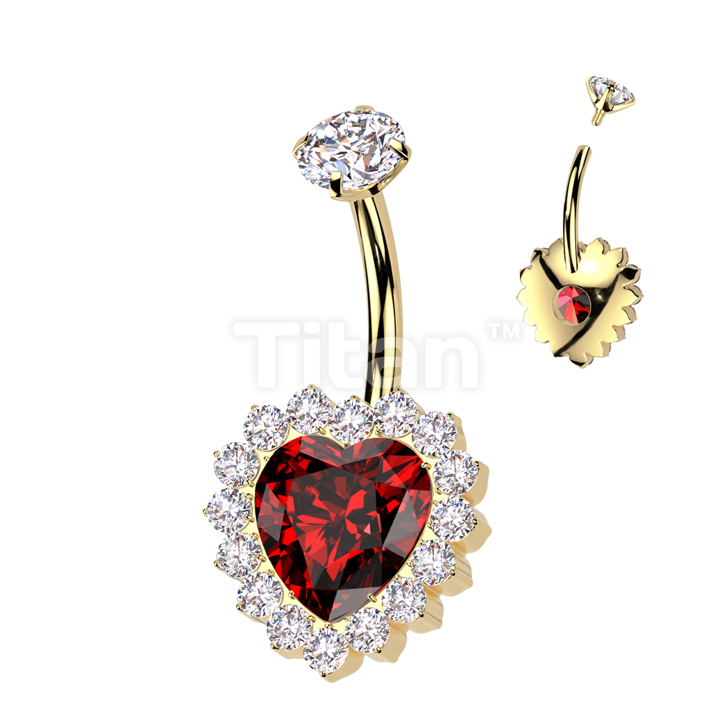 Implant Grade Titanium Internally Threaded CZ Heart Belly Button Ring With CNC CZ Pave Edge