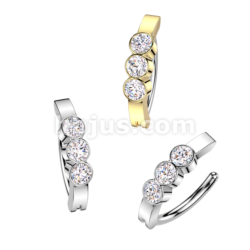 316L Surgical Steel Hinged 3 Bezel Set CZ Belly Button Ring