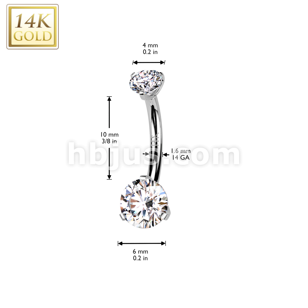 14K Gold Internally Threaded Double Round Prong Set CZ Belly Button Navel Ring