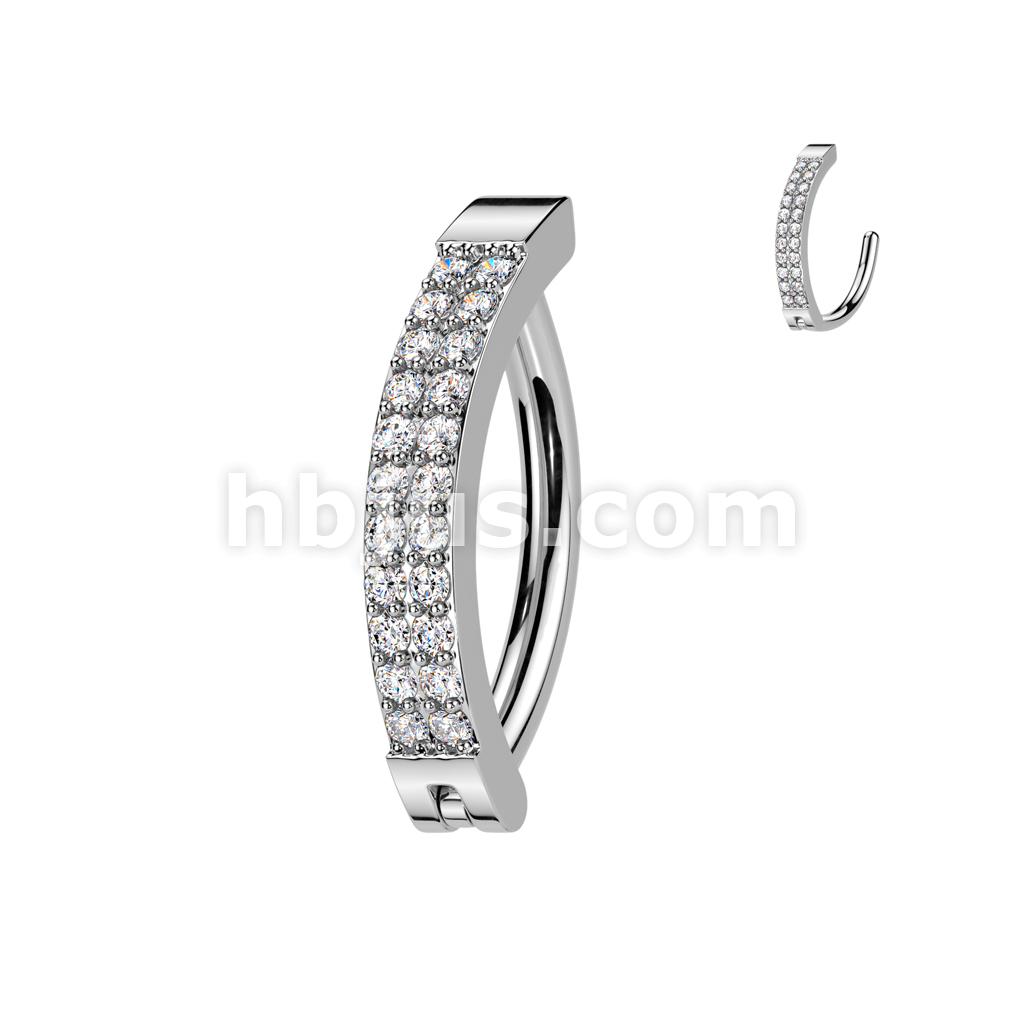 316L Surgical Steel Hinged Belly Button Ring With Double Line Pave CZ