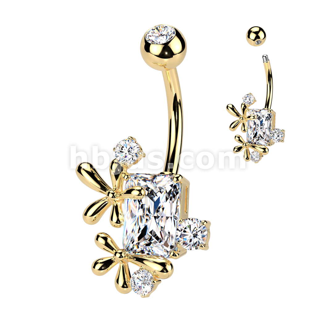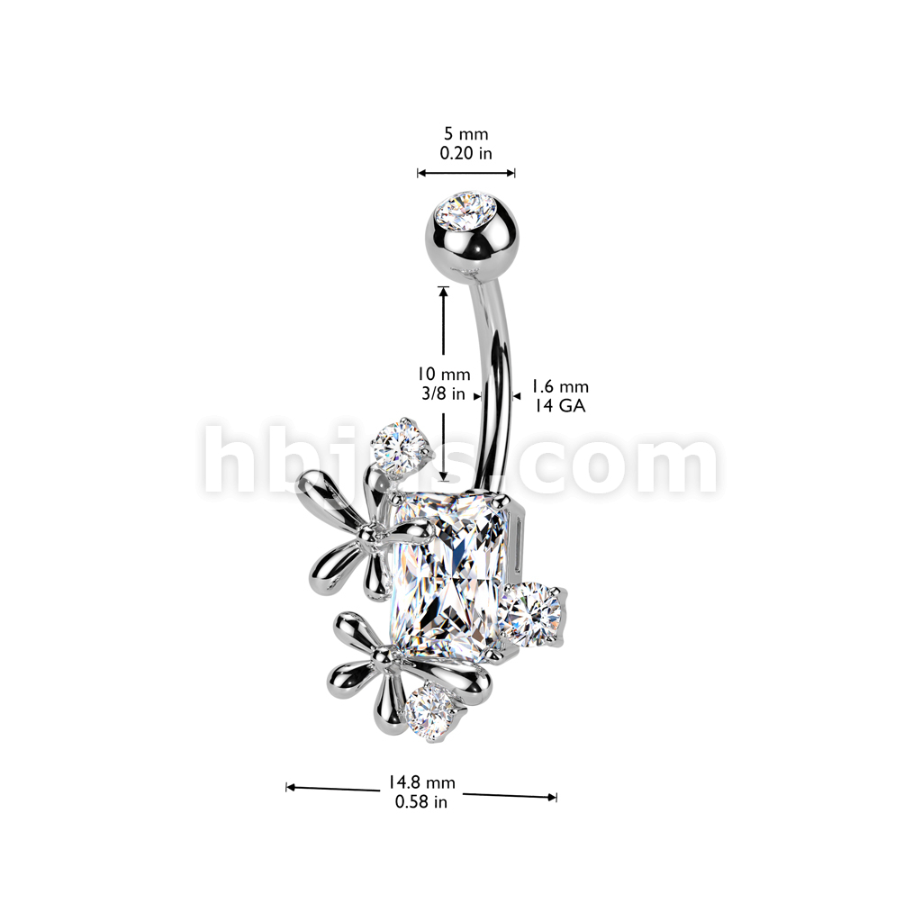 316L Surgical Steel CZ Rectangle With Flower and CZ Edge Belly Button Navel Ring