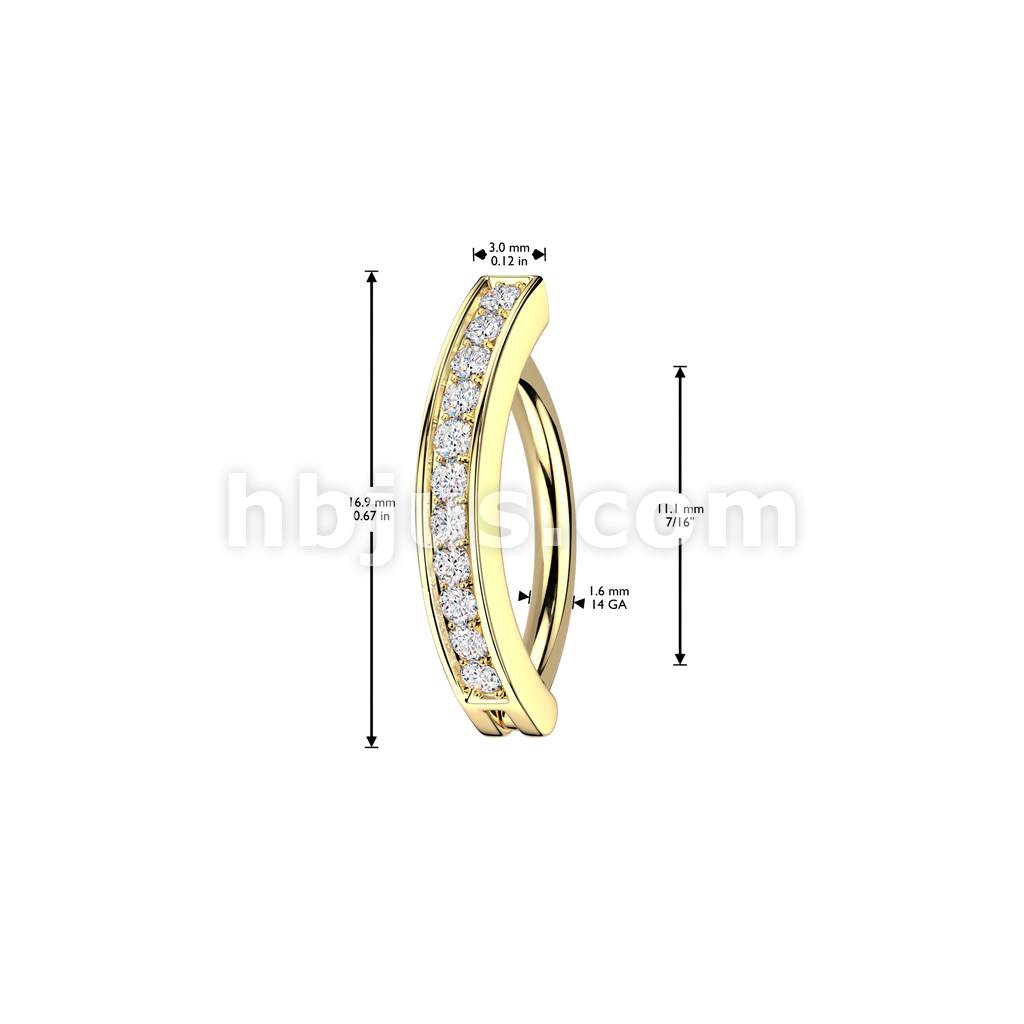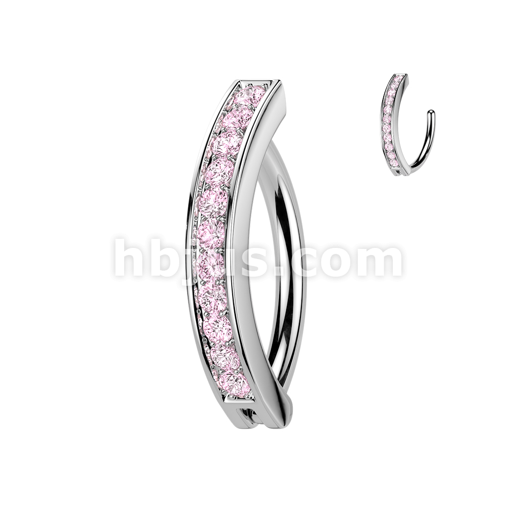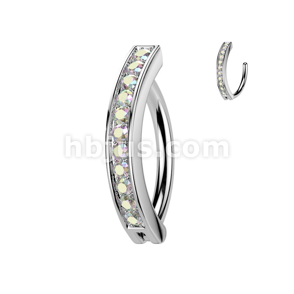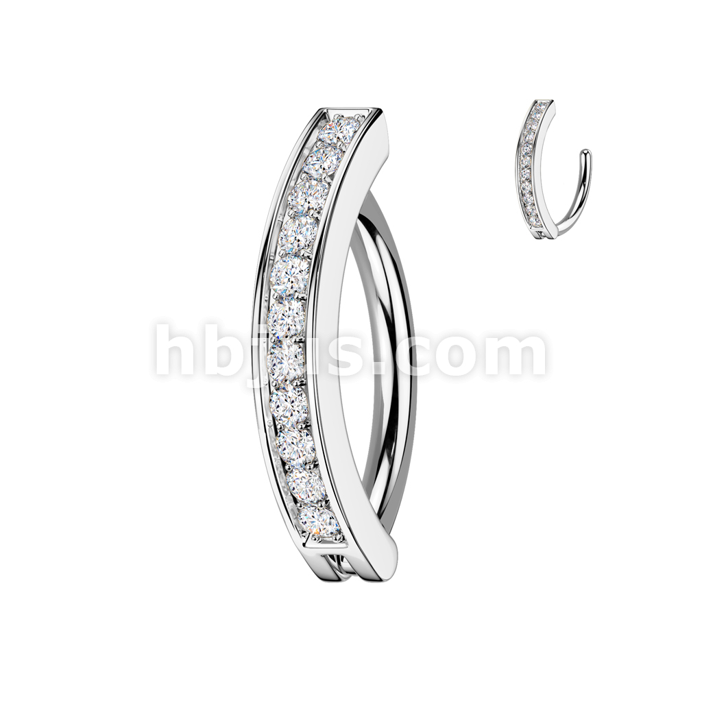 316L Surgical Steel Hinged Belly Button Ring With Pave CZ