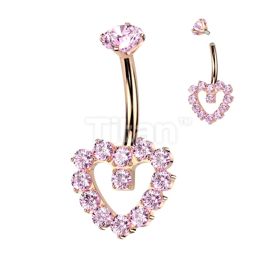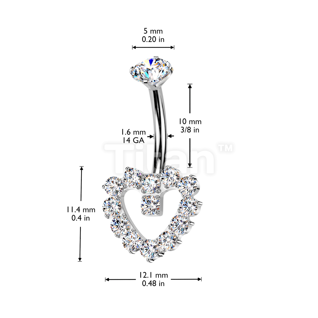 Implant Grade Titanium Internally Threaded Hollow CNC CZ Pave Heart Belly Button Ring With Round CZ Prong Set Top